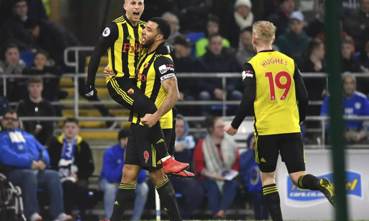 ഹാട്രിക്ക് നേടിയ ജെറാര്ഡ് ദെലൂഫെയുടെ മികവില് കാര്ഡിഫ് സിറ്റിക്കെതിരെ ഏകപക്ഷീയമായ മത്സരമാണ് വാറ്റ്ഫോര്ഡ് കാഴ്ചവെച്ചത്. പതിനെട്ടാം മിനുട്ടില് ദെലൂഫെയിലൂടെ തുടങ്ങിയ ഗോള്വേട്ട ഇഞ്ചുറി ടൈമില് ട്രോയ് ദിനെയാണ് അവസാനിപ്പിച്ചത്.