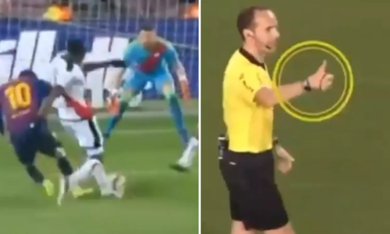 മത്സരത്തില് ആദ്യം ഗോള് നേടിയത് റയോ വല്ലക്കാനോയായിരുന്നു. വൈകാതെ ബാഴ്സ പിക്വെയുടെ ഹെഡറിലൂടെ സമനില നേടുകയും ചെയ്തു. ആദ്യ പകുതി തീരും മുമ്പെയായിരുന്നു മെസിയുടെ നീക്കം റയോ വല്ലക്കാനോ പ്രതിരോധത്തെ അങ്കലാപ്പിലാക്കിയത്. പെനല്റ്റി ബോക്സില് അഞ്ച് താരങ്ങള്ക്കിടയിലൂടെയാണ് മെസി ഗോളിനുള്ള പഴുത് കണ്ടെത്താന് ശ്രമിച്ചത്. ഇതിനിടെ റയോ പ്രതിരോധക്കാരന്റെ കാലില് തട്ടി ബാലന്സ് തെറ്റി മെസി വീഴുകയും ചെയ്തു.