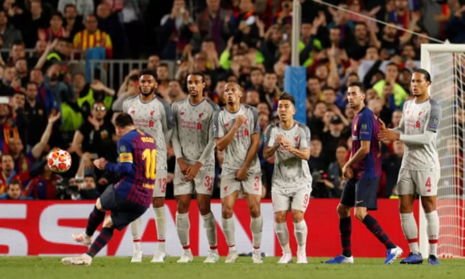 82ാം മിനിറ്റിലാണ് ന്യൂകാംപ് അക്ഷരാര്ത്ഥത്തില് ഇരമ്പിയത്. മിശിഹായുടെ മനോഹരമായ ഫ്രീകിക്ക് ഗോള്. ആര്ക്കും ഒന്നും ചെയ്യാനില്ലാത്ത കിക്ക്. കളിക്കാരും കാണികളെപോലെ കാഴ്ച്ചക്കാരായ നിമിഷമായിരുന്നു അത്. അങ്ങനെ ബാഴ്സലോണ ലിവര്പൂളിനെതിരെ മൂന്ന് ഗോളിന്റെ ആധികാരിക ജയം സ്വന്തമാക്കി.