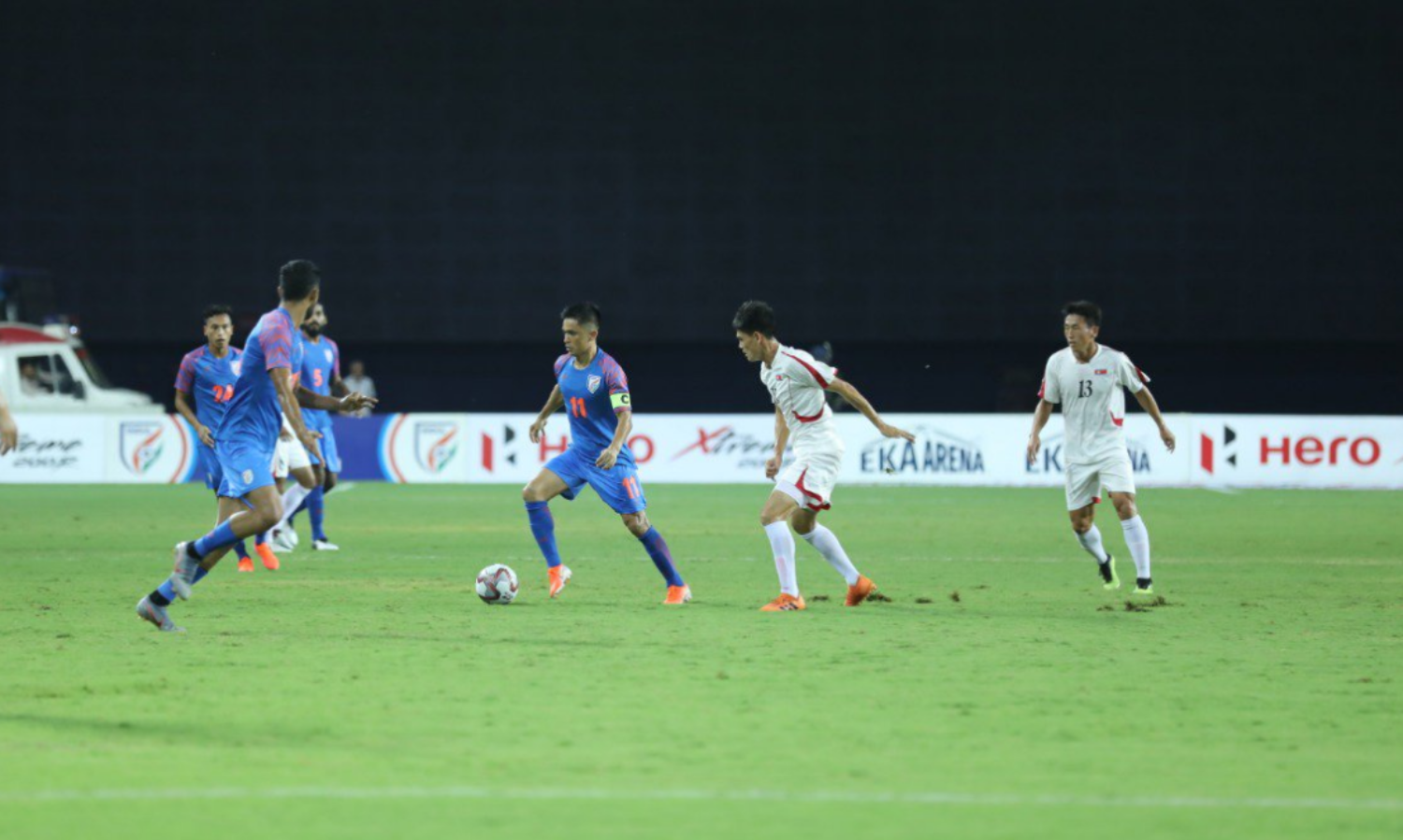 രണ്ടാം പകുതിയില് 51ആം മിനുറ്റിലായിരുന്നു ഇന്ത്യയുടെ ആദ്യ മറുപടിഗോള് പിറന്നത്. ഛേത്രിയുടെ പാസില് നിന്നും ലാലിയാന്സുവാലയായിരുന്നു ഗോള് നേടിയത്. 63ആം മിനുറ്റില് രി ചോലിലൂടെ വടക്കന് കൊറിയ ലീഡ് 4-1 ആക്കി ഉയര്ത്തി. 71ആം മിനുറ്റില് ഇന്ത്യ ഒരു ഗോള് കൂടി മടക്കിയെങ്കിലും 92ആം മിനുറ്റിലെ ഗോളോടെ ഉത്തരകൊറിയ ഗോള്പട്ടിക അവസാനിപ്പിച്ചു.
