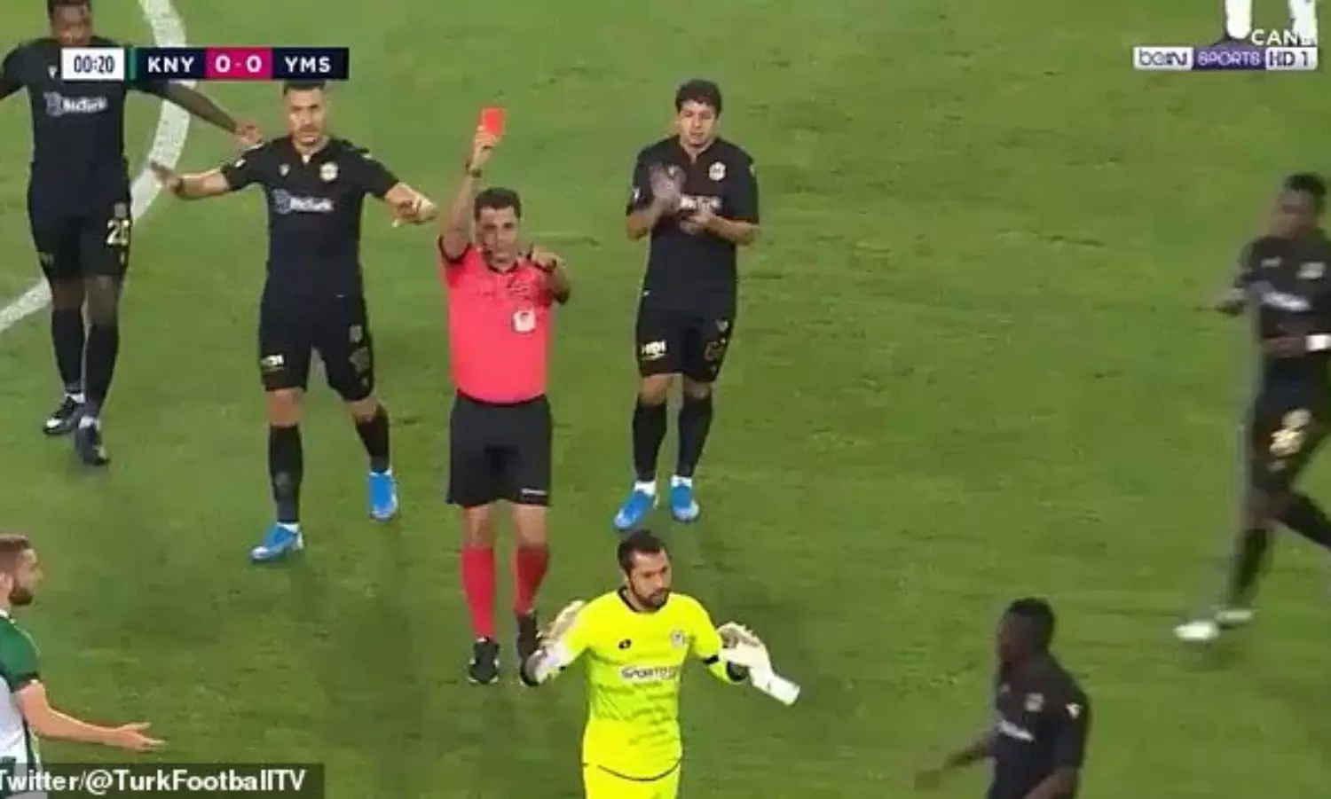 കളി തുടങ്ങി 13 ാം സെക്കന്റില് തന്നെ ചുവപ്പ് കാര്ഡ് വാങ്ങിയതിന്റെ നാണക്കേടിലാണ് തുര്ക്കിയിലെ ഒരു ഗോള്കീപ്പര്. നാണക്കേടിന്റെ ഈ റെക്കോര്ഡ് സ്വന്തമാക്കിയിരിക്കുന്നത് തുര്ക്കി ലീഗിലെ കോന്യസ്പോറിന്റെ ഗോള് കീപ്പര് സെര്ക്കന് കിരിന്റിലിയാണ്.
