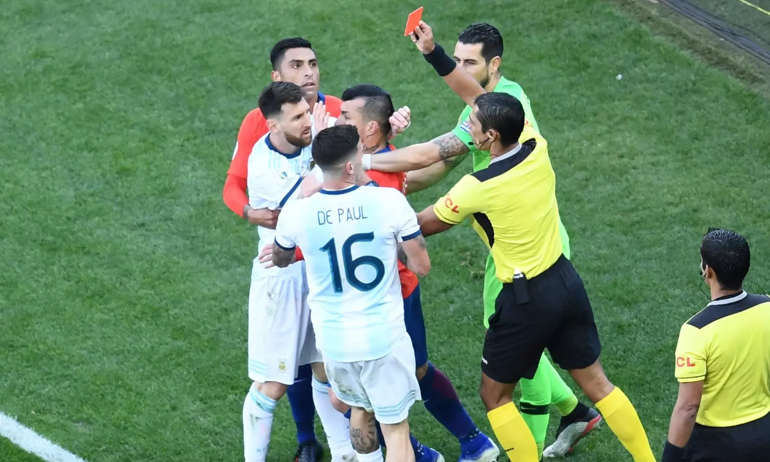 കോപ്പ അമേരിക്കയിലെ ലൂസേഴ്സ് ഫൈനല് പോരാട്ടം പാതിയില് ഉപേക്ഷിച്ച് റെഡ് കാര്ഡ് കണ്ട മെസി കൂടാരം കയറി. പിന്നീടൊരിക്കലും തിരിച്ചെത്തിയില്ല. അര്ജന്റീനയുടെ വിജയം ആഘോഷിക്കാനും മൂന്നാം സ്ഥാനക്കാരുടെ മെഡല് സ്വീകരിക്കാനും മെസി മൈതാനത്തെത്തിയില്ല.