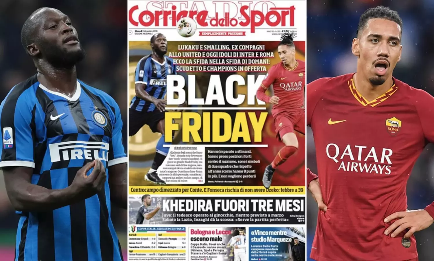റോമയും ഇന്റര്മിലാനും തമ്മിലുള്ള മത്സരത്തിന് മുന്നോടിയായി നല്കിയ റിപ്പോര്ട്ടിലായിരുന്നു വിവാദമായ 'ബ്ലാക് ഫ്രൈഡേ' എന്ന തലക്കെട്ട് പത്രം നല്കിയത്. റോമ പ്രതിരോധതാരം ക്രിസ് സ്മാളിംങിനേയും ഇന്റര്മിലാന് സ്ട്രൈക്കര് റൊമേലു ലുക്കാകുവിനേയും ഇടത്തും വലത്തും നല്കി കറുത്ത വെള്ളിയാഴ്ച്ച എന്ന തലക്കെട്ടുകൂടി ഇട്ട Corriere dello Sportന്റെ അനൗചിത്യമുള്ള നടപടിയാണ് വിവാദമായത്.