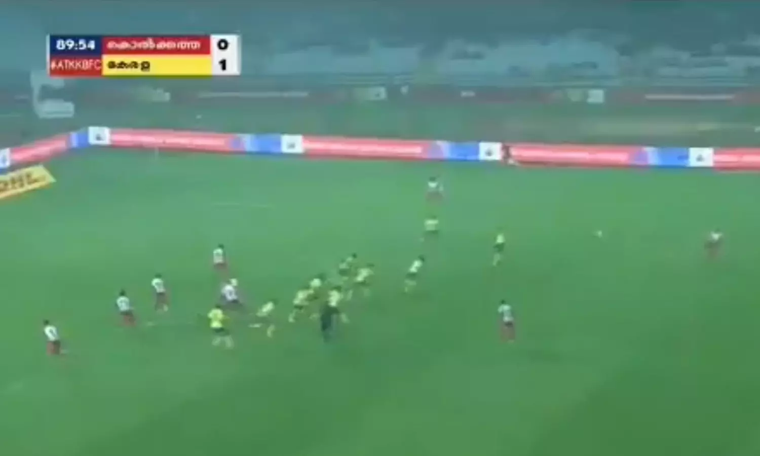കളിയുടെ അവസാന മിനിറ്റുകളില് ബ്ലാസ്റ്റേഴ്സിന്റെ ബോക്സിനു പുറത്ത് എ.ടി.കെക്ക് ലഭിച്ച ഫ്രീ കിക്കിന് ഗോള് സാധ്യത മണത്ത മഞ്ഞപ്പട ഒരുക്കിയ കെണിയായിരുന്നു മനപൂര്വമുണ്ടാക്കിയെടുത്ത ഓഫ് സൈഡ്. കിക്കെടുത്ത സമയത്ത് പ്രതിരോധത്തില് നിന്ന ബ്ലാസ്റ്റേഴ്സ് താരങ്ങള് ബോക്സിനുള്ളിലേക്ക് ഓടിക്കയറുന്നതിന് പകരം മുമ്പോടി ഓടി ഓഫ് സൈഡ് ഒരുക്കുകയായിരുന്നു. ഫ്രീ കിക്കെടുത്ത പന്ത് നേരെ എ.ടി.കെ താരം റോയ് കൃഷ്ണയുടെ ബൂട്ടിലേക്കാണ് എത്തിയത്. അനായാസം കൃഷ്ണ പന്ത് ബ്ലാസ്റ്റേഴ്സിന്റെ വലയിലാക്കുകയും ചെയ്തു. പക്ഷേ റഫറി ഓഫ് സൈഡ് വിളിച്ചു. കഴിഞ്ഞ ലോകകപ്പില് സെനഗലിനെതിരെ ജപ്പാന് പ്രയോഗിച്ച അതേ തന്ത്രമാണ് ബ്ലാസ്റ്റേഴ്സും വിജയകരമായി കൊല്ക്കത്തയില് നടപ്പാക്കിയത്. വീഡിയോ കാണാം.