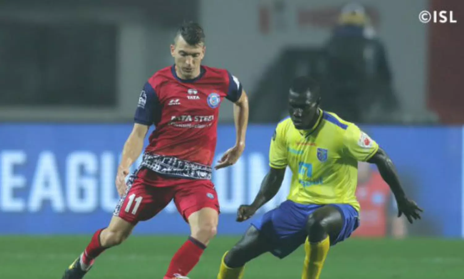 50ാം മിനുറ്റില് അബ്ദുല് ഹക്കു ചുവപ്പ് കാര്ഡ് കണ്ട് പുറത്തായതോടെ പത്ത് പേരുമായാണ് ബ്ലാസ്റ്റേഴ്സ് കളിച്ചത്. 11-ാം മിനിറ്റില് മെസ്സി ബൗളിയിലൂടെ കേരളമാണ് ആദ്യം മുന്നിലെത്തിയത്. 39-ാം മിനിറ്റില് അക്കോസ്റ്റയിലൂടെ ജംഷേദ്പുര് ഒപ്പമെത്തി. 50-ാം മിനിറ്റില് 10 പേരായി ചുരുങ്ങിയെങ്കിലും ഓഗ്ബെച്ചെയുടെ മികവില് ബ്ലാസ്റ്റേഴ്സ് 56-ാം മിനിറ്റില് ലീഡെടുത്തു. ഹെഡറിലൂടെയായിരുന്നു ഗോള്.