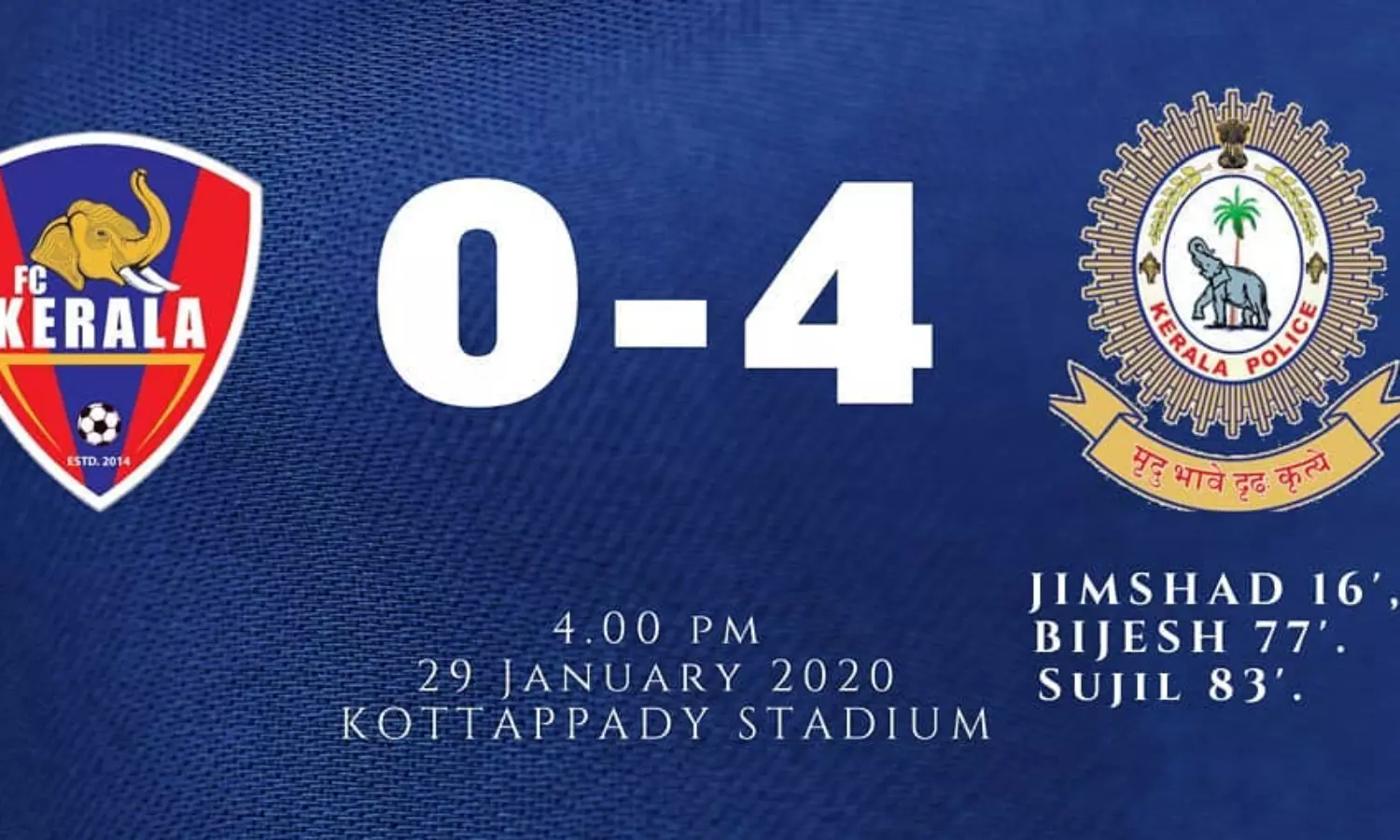 മത്സരത്തിന്റെ നിശ്ചിത സമയം അവസാനിക്കാന് ഏഴ് മിനിറ്റ് ബാക്കി നില്ക്കെ സുജിലിലൂടെ പോലീസ് ടീം നാലാമതും എഫ്.സി കേരളയുടെ വല കുലുക്കി.