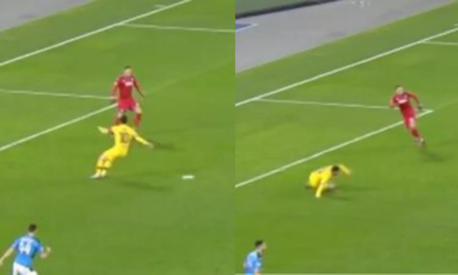 ചാമ്പ്യന്സ് ലീഗിലെ എവേ മത്സരങ്ങളില് ബാഴ്സലോണ അധികം ഗോളുകളൊന്നും അടുത്തിടെ അടിച്ചിട്ടില്ല. ഇതറിയാവുന്ന മെസി അര്ധാവസരം പോലും മുതലാക്കാന് ശ്രമിച്ചത് സ്വാഭാവികം. നാപോളി ഗോള് കീപ്പര് ഡേവിഡ് ഒസ്പിനയുടെ കാലില് നിന്നും പന്തു തട്ടിയെടുക്കാനാണ് മെസി മിന്നല് വേഗത്തില് എത്തിയത്. ഒസ്പിനയാകട്ടെ മെസിയെ കബളിപ്പിച്ച് സ്വന്തം താരത്തിന് മറിച്ചു നല്കുകയും ചെയ്തു. ഇതിനിടെ ബാലന്സ് നഷ്ടപ്പെട്ട മെസി വീണുപോവുകയായിരുന്നു.