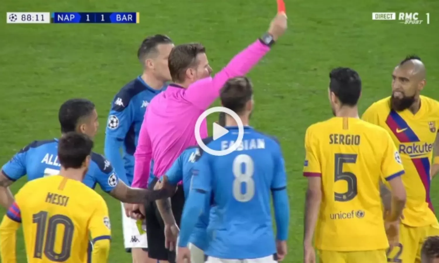 ഈ ചുവപ്പുകാര്ഡില് ആദ്യാവസാനം കുറ്റക്കാരന് വിദാല് തന്നെയായിരിക്കും. ഒരേ സംഭവത്തില് രണ്ട് മഞ്ഞക്കാര്ഡുകള് നേടിക്കൊണ്ടാണ് വിദാലിന് ചുവപ്പ് കാര്ഡ് കണ്ട് മടങ്ങേണ്ടി വന്നത്. നാപ്പോളിയുടെ മരിയോ റൂയിയെ ടാക്കിള് ചെയ്ത് വീഴ്ത്തിയതിനായിരുന്നു ആദ്യ മഞ്ഞ. ഫൗളിന് ശേഷം ഇരച്ചെത്തി തലകൊണ്ടിടിച്ചതിനായിരുന്നു രണ്ടാമത്തെ മഞ്ഞക്കാര്ഡ്.