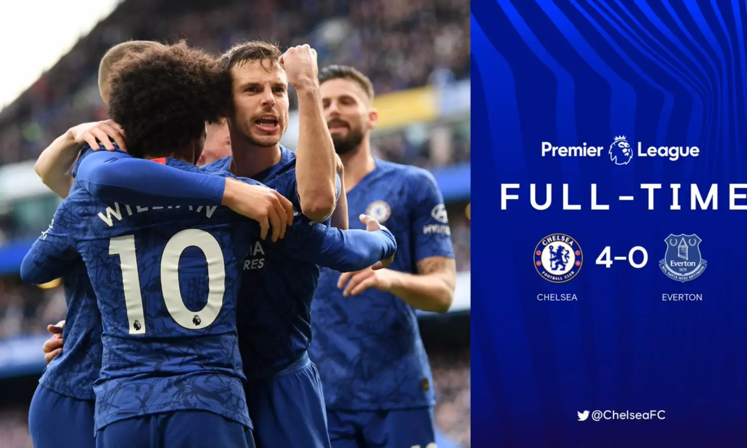 പരിശീലകന് ലംപാര്ഡിന്റെ വിശ്വാസം ഒരിക്കല്കൂടി യുവനിര കാത്ത മത്സരത്തില് തികച്ചും ഏകപക്ഷീയമായിരുന്നു ചെല്സിയുടെ വിജയം. മത്സരത്തില് ആകെ ഒരു ഷോട്ട് മാത്രമാണ് ലക്ഷ്യത്തിലേക്ക് എവര്ട്ടണ് തൊടുക്കാനായത്. 'സര്വ്വതും പിഴച്ചു' എന്നായിരുന്നു അറുപതുകാരനായ ആഞ്ചലോട്ടി മത്സരശേഷം പ്രതികരിച്ചത്.