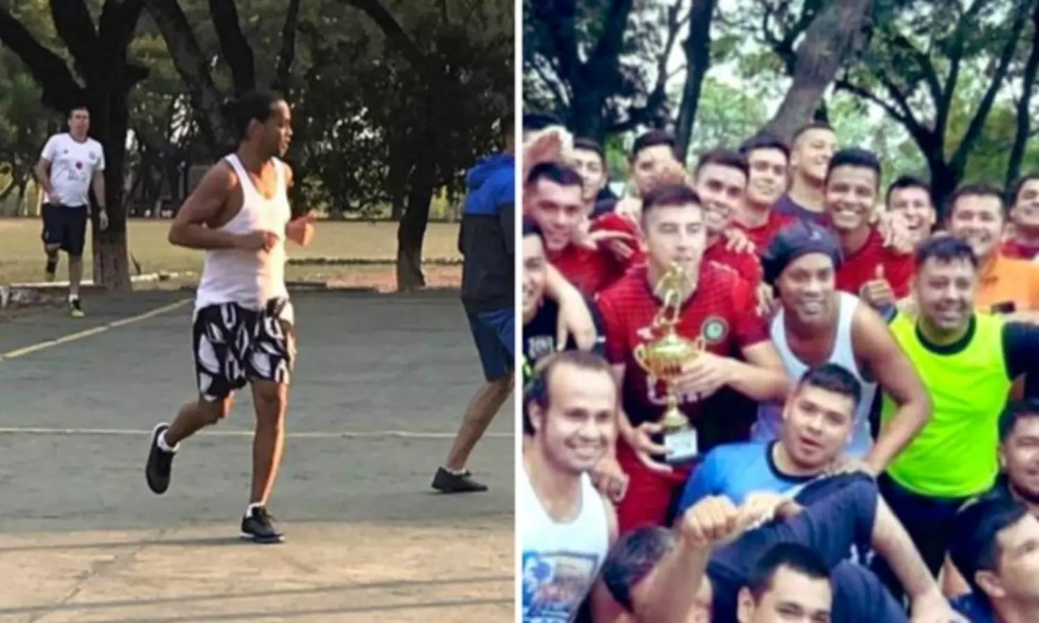 ബാഴ്സലോണ, എ.സി മിലാന്, പി.എസ്.ജി തുടങ്ങി വിവിധ രാജ്യങ്ങളിലെ സൂപ്പര് ക്ലബുകളില് കളിച്ചിട്ടുള്ള ഫുട്ബോള് ഇതിഹാസതാരത്തിന് ജയിലിലെ ഫുട്ബോള് സ്വാഭാവികമായും കുട്ടിക്കളിയായിരുന്നു. 11-2ന് റൊണാള്ഡീന്യോ കളിച്ച ടീം വിജയിക്കുകയും ചെയ്തു. റൊണാള്ഡീന്യോ കളിക്കുന്നതിന്റേയും മത്സരശേഷം ജയിലിലെ സഹതടവുപുള്ളികള്ക്കൊപ്പം ഫോട്ടോ എടുക്കുന്നതിന്റേയും ചിത്രങ്ങള് പുറത്തുവന്നിട്ടുണ്ട്.