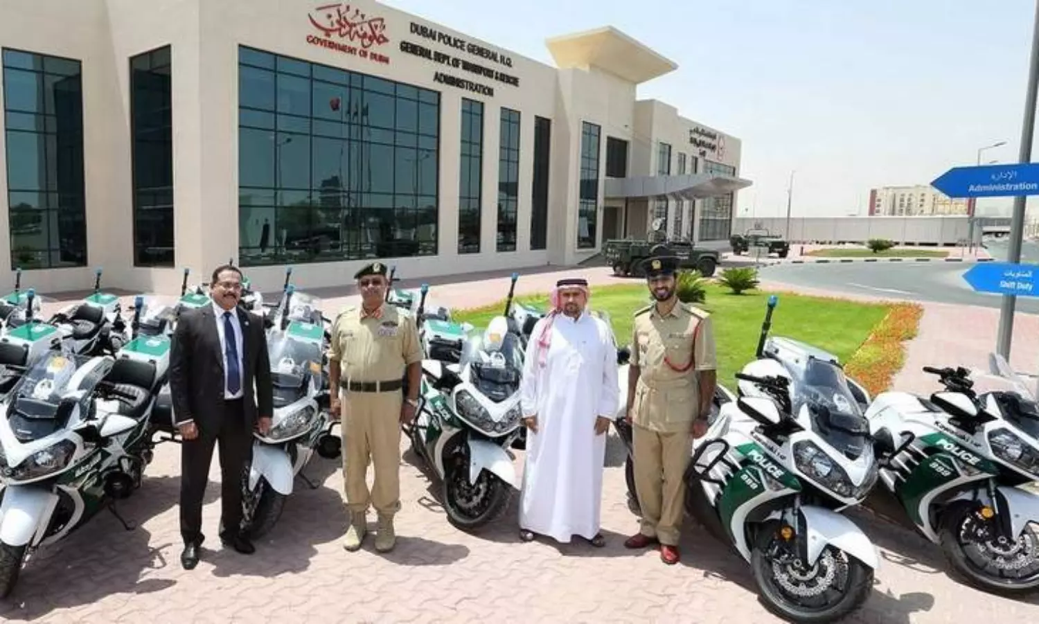 ദുബൈ പൊലീസ് ആസ്ഥാനത്ത് നടന്ന ബൈക്ക് കൈമാറ്റ ചടങ്ങില് ട്രാന്സ്പോര്ട്ട് ആന്ഡ് റെസ്ക്യൂ വകുപ്പ് ഡയറക്ടര് ജനറല് മേജര് ജനറല് അനസ് അല് മത്റൂശി, മേജര് സുല്ത്താന് അല് മര്റി, കാവസാകി ലിബര്ട്ടി ഓട്ടോമൊബൈല്സ് കമ്പനി ബ്രാന്ഡ് മാനേജര് രവി നായര്, സെന്ട്രല് സര്വീസസ് മേധാവി സാലിം ഉബൈദ് അല് ഹാജിരി എന്നിവര് പങ്കെടുത്തു.