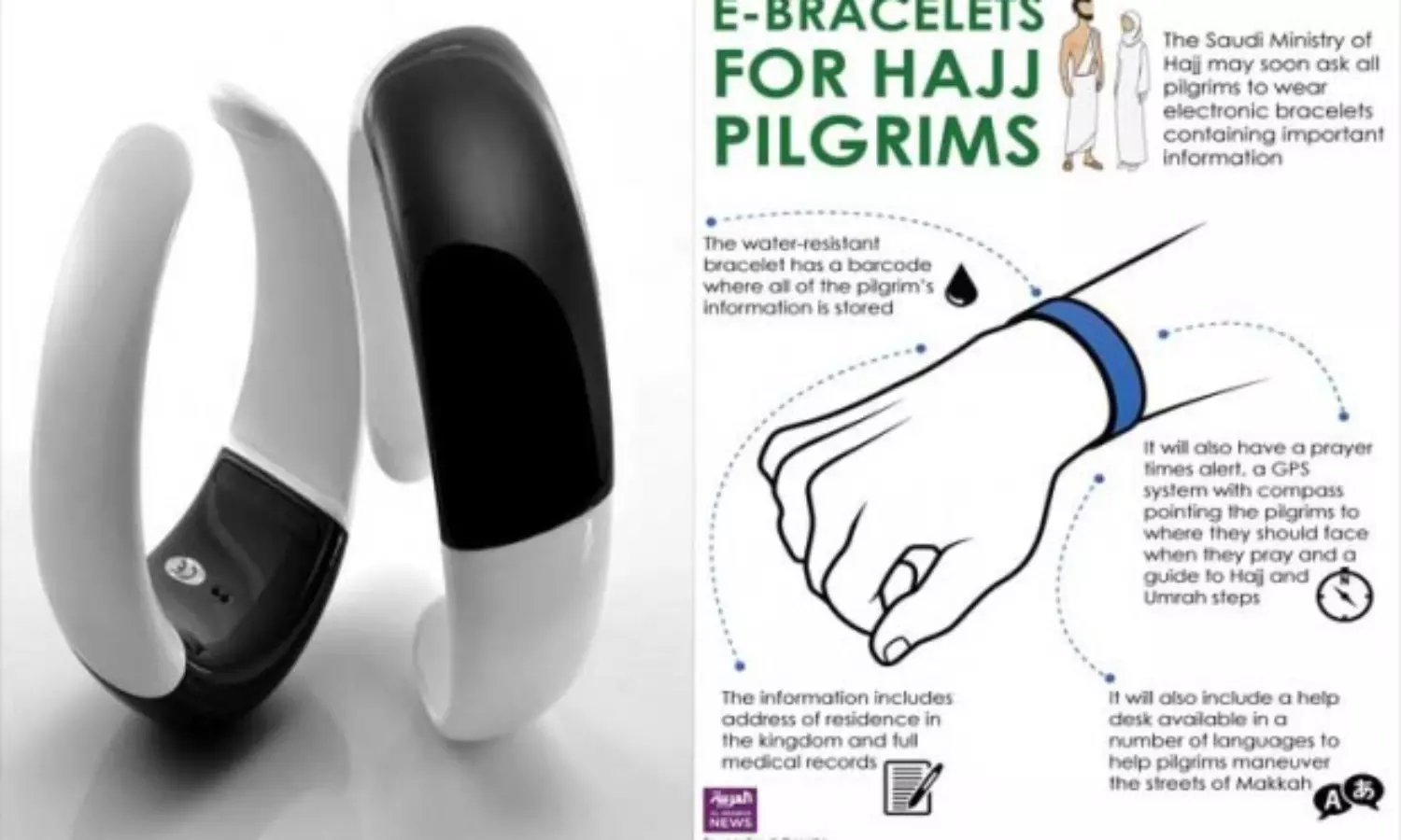 ഈ വർഷം ഹജ്ജ് തീര്ഥാടകര്ക്ക് നടപ്പാക്കുന്ന ഇലക്ട്രോണിക് കൈവളക്ക് സൗദി ഹജ്ജ് മന്ത്രി ഡോ. മുഹമ്മദ് സാലിഹ് ബിൻ താഹിർ ബന്ദൻ അംഗീകാരം നല്കി. തീര്ഥാടകരെ വേഗത്തില് തിരിച്ചറിയാനും അവരുടെ മുഴുവന് വിവരങ്ങളും ഇലക്ട്രോണിക് സംവിധാനത്തിലൂടെ അറിയാനും ലക്ഷ്യമിട്ടാണ് പദ്ധതി നടപ്പിലാക്കുന്നത്. പ്രത്യേക ആപ്ലിക്കേഷന് മുഖേന സ്മാര്ട്ട് ഫോണുകള്, ഐപാഡ് എന്നിവയില് സംവിധാനം പ്രവര്ത്തിക്കാന് കഴിയുമെന്നതാണ് ഇതിന്െറ സവിശേഷത.
