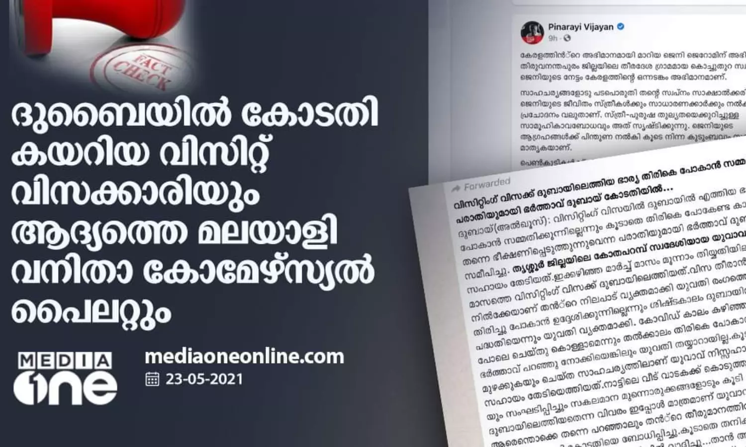 അതിനിടെയാണ് വിസിറ്റ് വിസയിൽ ദുബൈയിലെത്തിയ തൃശൂർ കൊടുങ്ങല്ലൂർ സ്വദേശിനി വിസാ കാലാവധി കഴിഞ്ഞാലും നാട്ടിലേക്ക് മടങ്ങാൻ തയാറാവുന്നില്ലെന്ന് ചൂണ്ടിക്കാട്ടി ഭർത്താവ് ദുബൈയിലെ കോടതിയിലെത്തി എന്ന വാർത്ത വാട്ട്സ്ആപ്പിൽ പരക്കുന്നത്. ഇതിനെ അടിസ്ഥാനമാക്കി ചിലർ ഭർത്താവിനൊപ്പം നിന്നും മറ്റുചിലർ ഭാര്യക്ക് ഒപ്പം നിന്നും താത്വിക അവലോകനത്തിന് വരെ തുടക്കം കുറിച്ചു. ഗൾഫിലും നാട്ടിലുമെല്ലാം ഇത് ഗൗരവുമുള്ള വാർത്തയായി പടർന്നു.