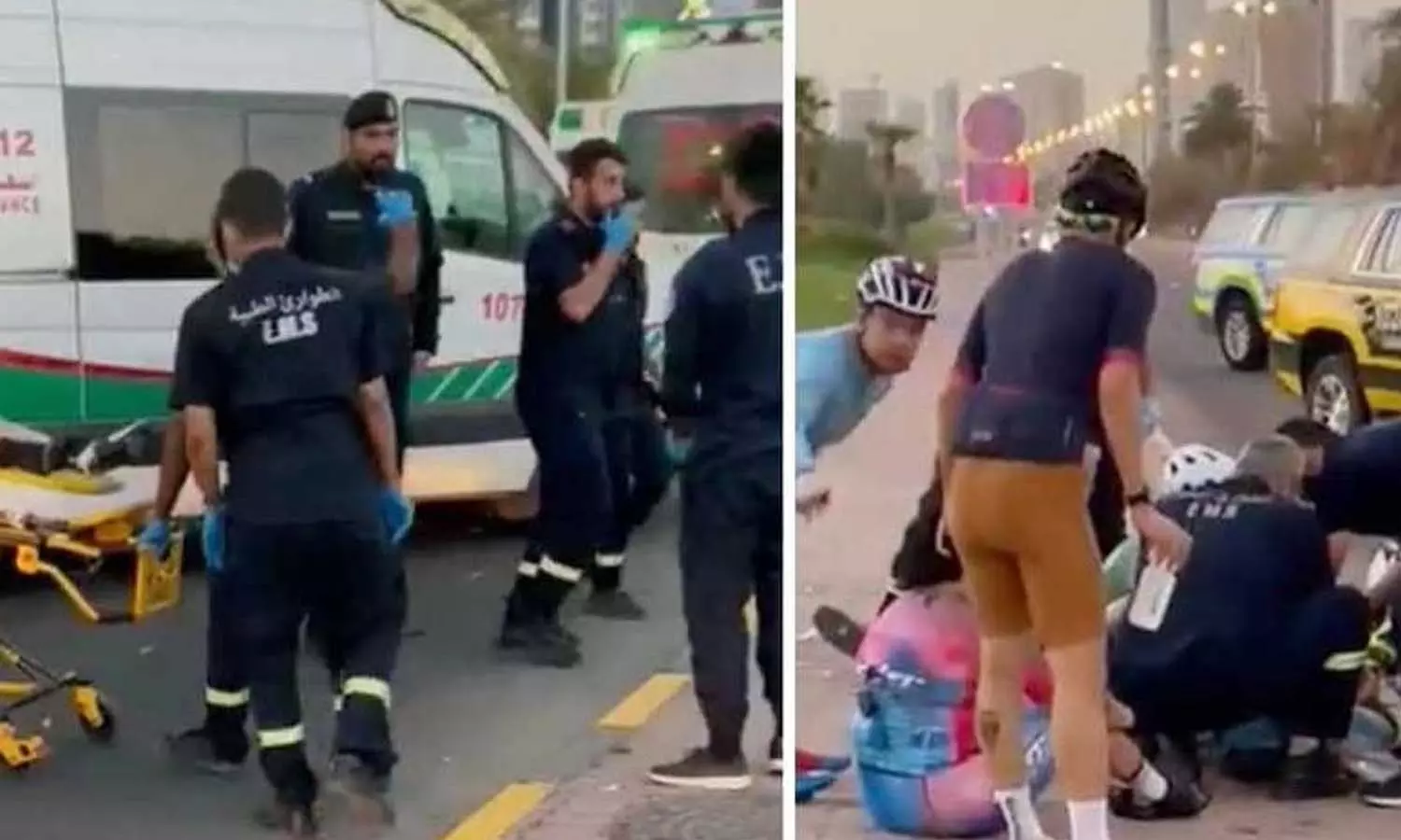 കഴിഞ്ഞ ദിവസമാണ് അറേബ്യൻ ഗൾഫ്റോഡിൽ സൈക്ലിംഗ് പരിശീലിക്കുന്നതിനിടെ വാഹനം ഇടിച്ചുകയറി നിരവധി പേർക്ക് പരിക്കേറ്റത്