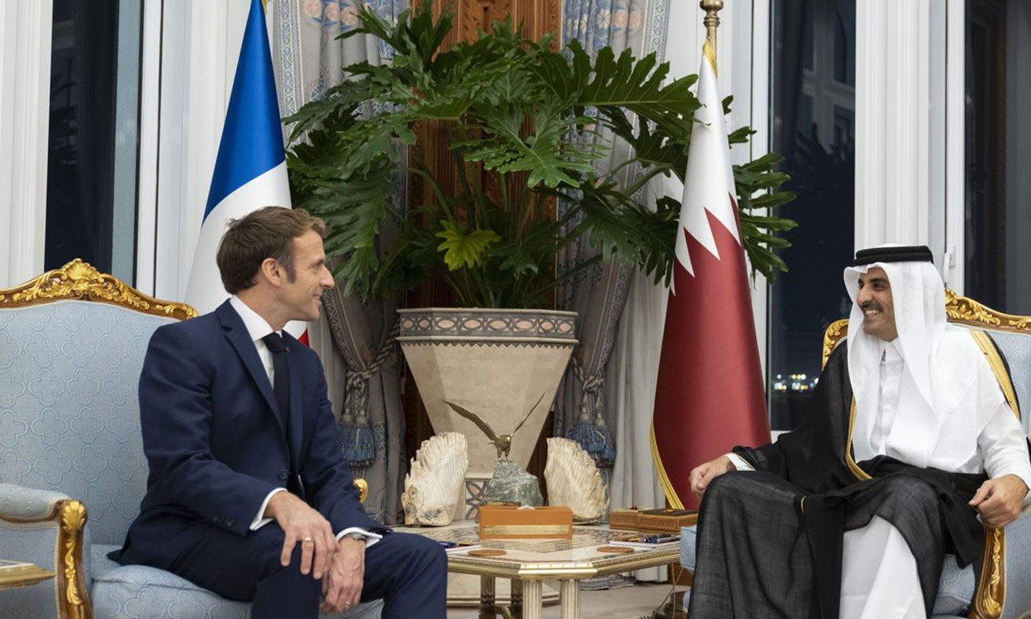 ഖത്തർ അമീർ ശൈഖ് തമീം അൽത്താനിയുമായി മാക്രോൺ കൂടിക്കാഴ്ച്ച നടത്തി