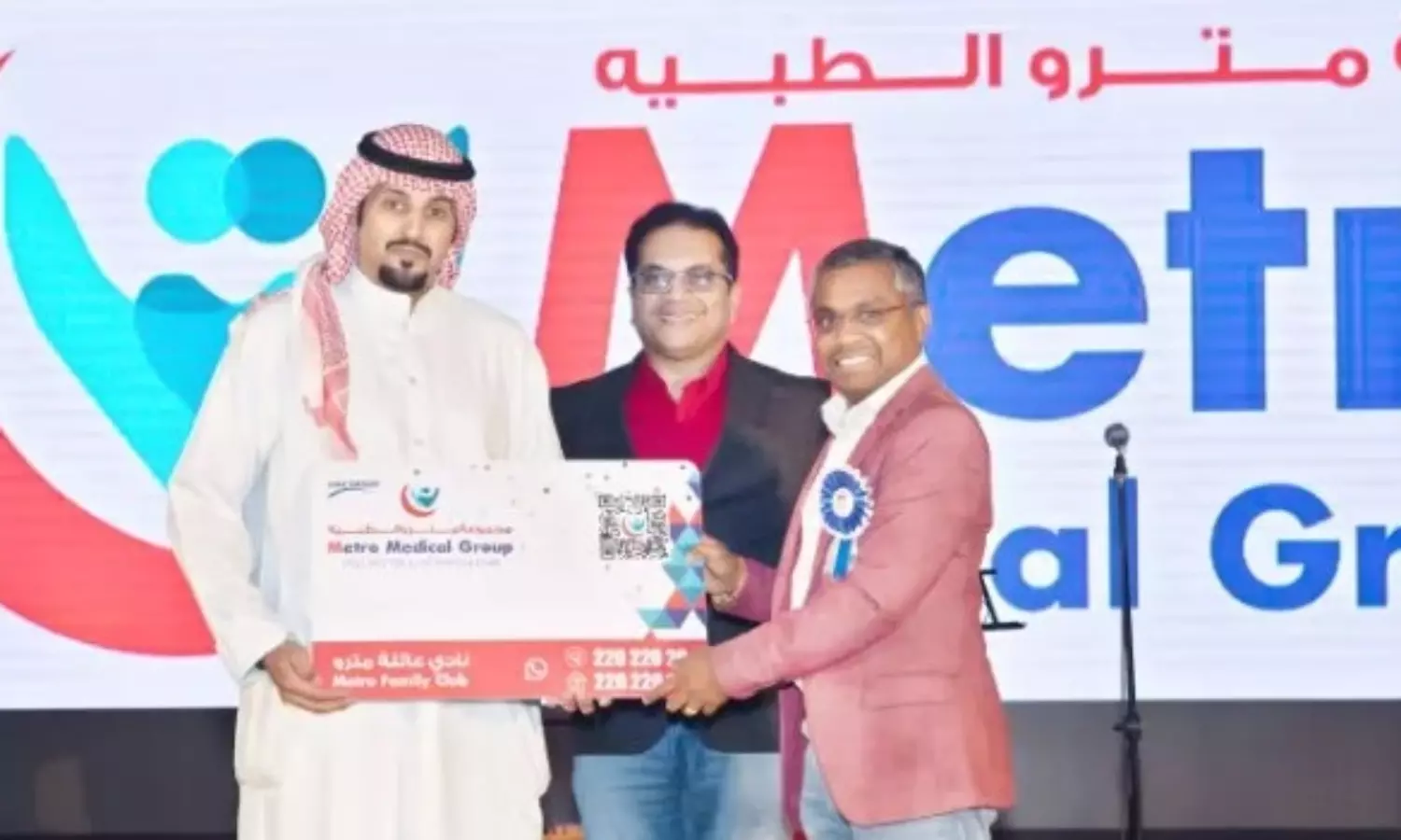 കുവൈത്തിൽ തെലുഗു കലാസമിതി അംഗങ്ങൾക്കുള്ള മെട്രോ ഫാമിലി പ്രിവിലേജ് കാർഡ് മെട്രോ മെഡിക്കൽ ഗ്രൂപ് ബിസിനസ് ഡെവലപ്മെന്റ് മാനേജർ ഫൈസൽ ഹംസയും പ്രമുഖ കുവൈത്തി ഗായകൻ മുബാറക് അൽറാഷിദും ചേർന്ന് തെലുഗു കലാ സമിതി പ്രസിഡന്റ് സായി വെങ്കട്ട സുബ്ബറാവുവിന് കൈമാറി.