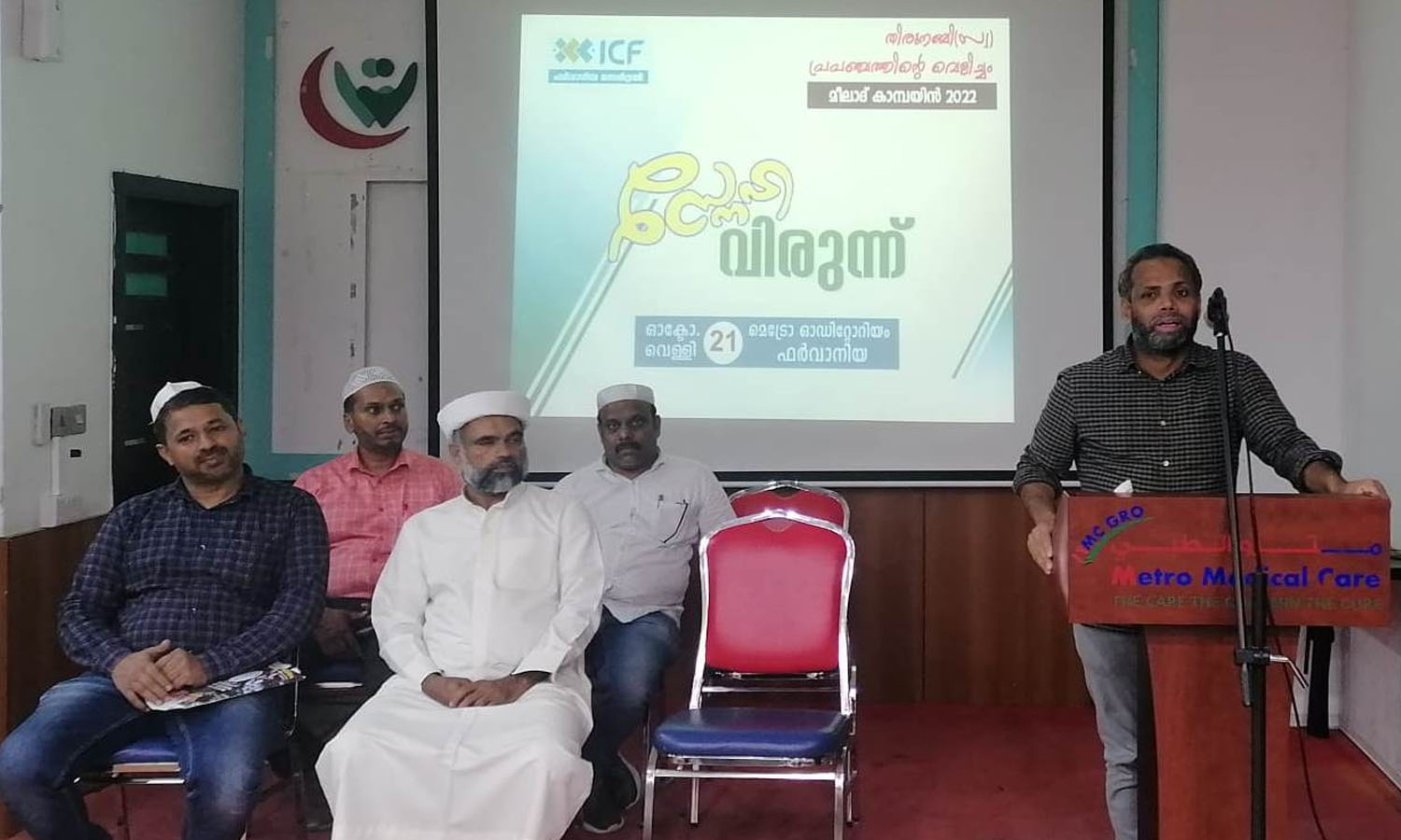 കുവൈത്ത് സിറ്റി: ഐ.സി.എഫ്. ഇന്റര്നാഷണല് മീലാദ് കാമ്പയിന് സ്നേഹ വിരുന്നിന്റെ ഭാഗമായി മിലാദ് സംഗമം സംഘടിപ്പിച്ചു . സുബൈര് മുസ്ലിയാരുടെ അധ്യക്ഷതയില് നടന്ന സംഗമം എഞ്ചിനിയര് അബൂ മുഹമ്മദ് ഉദ്ഘാടനം ചെയ്തു. സ്വന്തം മതവും സംസ്കാരവും കണിശമായി കൊണ്ടുനടക്കുമ്പോൾ തന്നെ മറ്റുള്ളവരുടെ സംസ്കാരങ്ങളെയും ചിന്താധാരകളെയും ബഹുമാനിക്കാനാണ് മുഹമ്മദ് നബി പഠിപ്പിച്ചതെന്നും നൂറ്റാണ്ടുകളായി നമ്മുടെ നാട്ടിൽ നിലനിൽക്കുന്ന പരസ്പര വിശ്വാസവും ബഹുമാനവും എന്തു വില കൊടുത്തും കാത്തു നിർത്തണമെന്നും സംഗമം അഭിപ്രായപ്പെട്ടു.