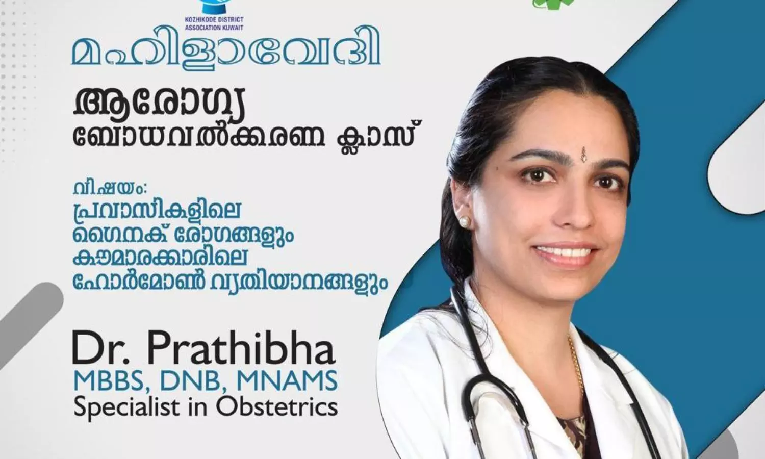 പ്രവാസികളിലെ ഗൈനക് രോഗങ്ങളും കൗമാരക്കാരിലെ ഹോർമോൺ വ്യതിയാനങ്ങളും എന്ന വിഷയത്തിൽ കുവൈത്തിലെ പ്രമുഖ ഗൈനക്കോളജിസ്റ്റായ ഡോ. പ്രതിഭ ക്ലാസ്സ് എടുക്കും. നാളെ വൈകിട്ട് 6:30 ന് അബ്ബാസിയ ഹൈഡൻ ഹാളിളാണ് സെമിനാർ സംഘടിപ്പിച്ചിരിക്കുന്നത്.
