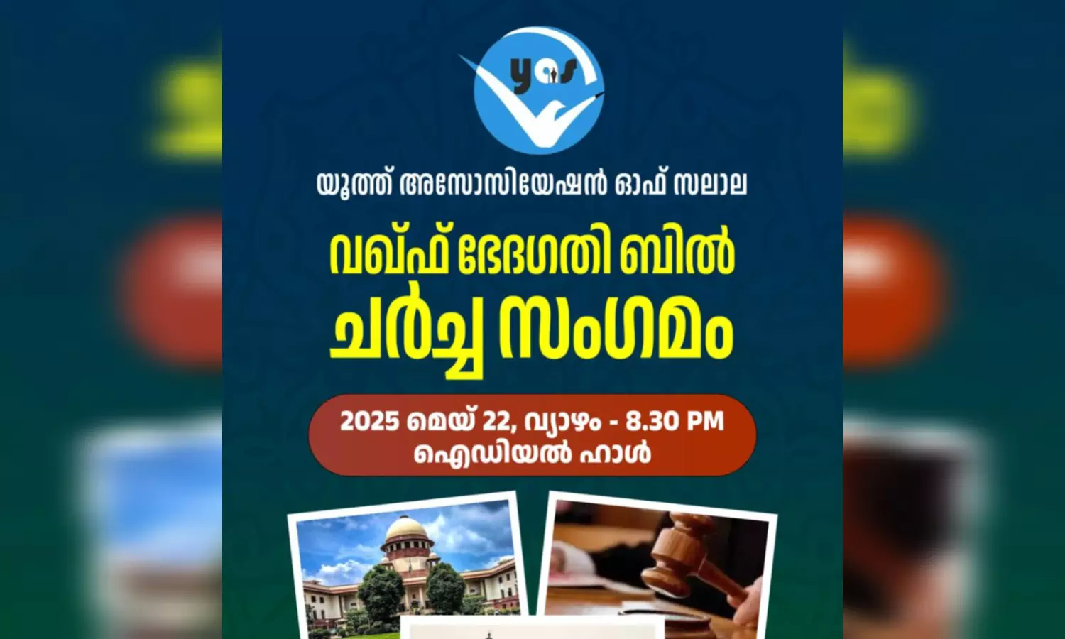 വഖഫ് ഭേദഗതി നിയമം: യൂത്ത് അസോസിയേഷൻ ഓഫ് സലാല സംഘടിപ്പിക്കുന്ന ചർച്ച സംഗമം ഇന്ന്