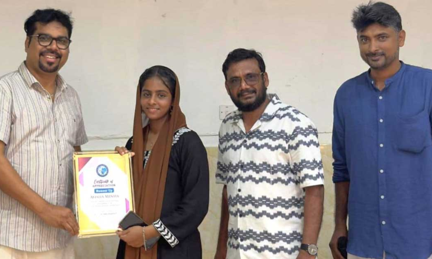തുംറൈത് ഇന്ത്യൻ സ്കൂൾ പ്രസിഡന്റ് റസ്സൽ മുഹമ്മദാണ് ഉപഹാരം സമ്മാനിച്ചത്. പി ഒ എസ് ഭാരവാഹികളും സംബന്ധിച്ചു. പി ഒ എസ് എക്സിക്യൂട്ടീവ് അംഗവും പൊന്നാനി സ്വദേശിയുമായ മുജീബിൻ്റെയും സഫൂറയുടെയും മകളാണ് ആയിഷ മിൻഹ ഇന്ത്യൻ സ്കൂൾ സലാല വിദ്യാർത്ഥിയാണ്.