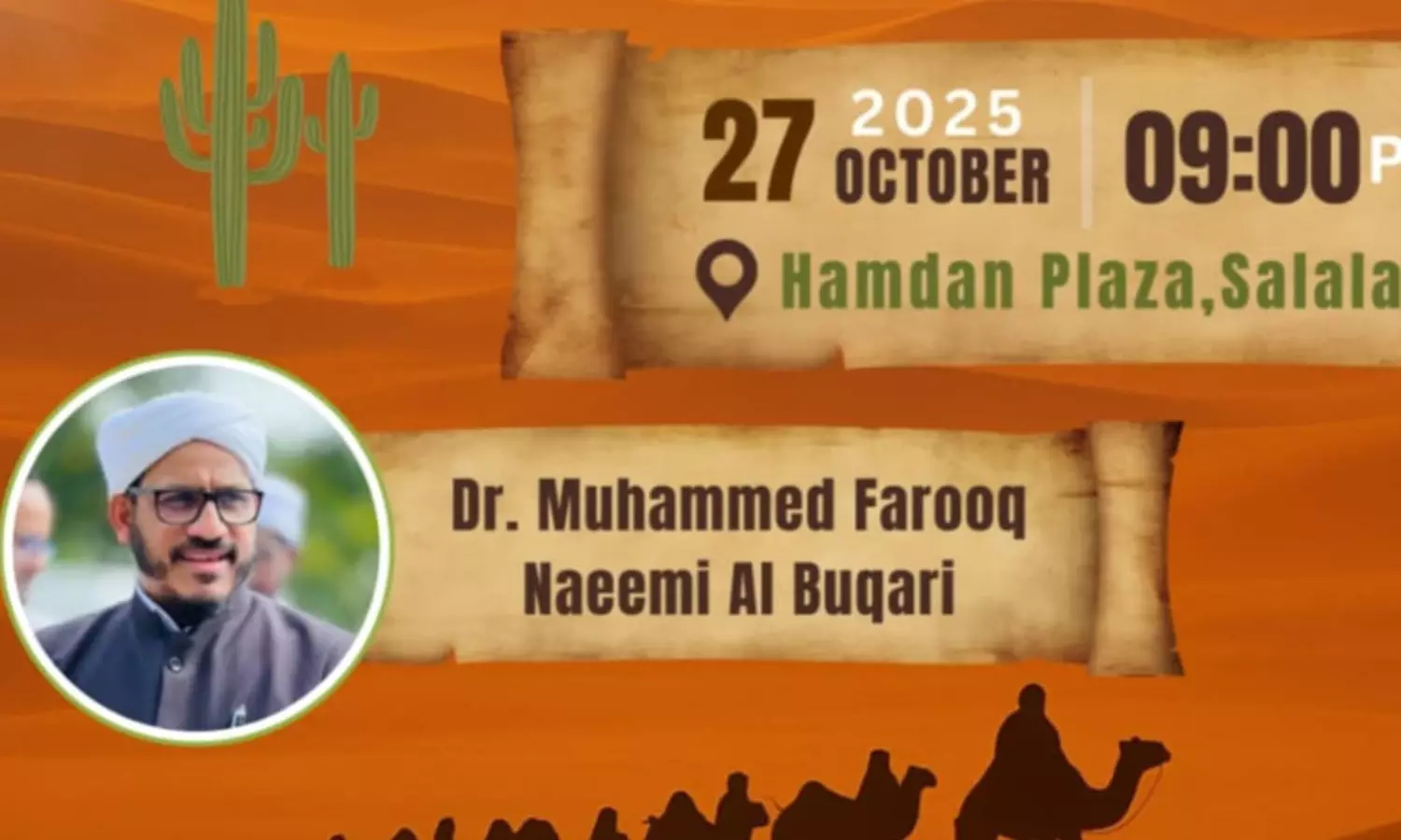 സലാല: ഹിജ്റ എക്സ്പെഡിഷന് എന്ന പേരില് ഇസ്ലാമിക ചരിത്രത്തിലെ സുപ്രധാന സംഭവമായ ഹിജ്റ യാത്രയുടെ വഴികളിലൂടെയുള്ള പഠന പര്യവേക്ഷണ യാത്രാനുഭവങ്ങളുടെ ദൃശ്യാവതരണം ഒക്ടോബര് 27 തിങ്കളാഴ്ച രാത്രി 9 മണിക്ക് ഹംദാന് പ്ലാസയില് ഒരുക്കുന്നു.