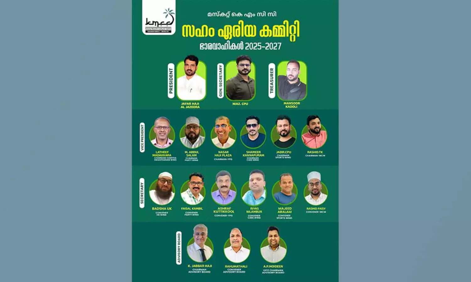 മസ്കത്ത്: മസ്കത്ത് കെഎംസിസി സഹം ഏരിയ 2025-2027 വർഷത്തേക്കുള്ള പുതിയ ഭാരവാഹികളെ തെരഞ്ഞെടുത്തു. സഹം കെഎംസിസി ഓഫീസിൽ നടന്ന കൗൺസിൽ മീറ്റ് ഷാഹിദ് ഫൈസി ഉദ്ഘാടനം നിർവഹിച്ചു. ജാഫർ അൽ ജസീറ അധ്യക്ഷത വഹിച്ചു. ഭാരവാഹികളായി ജാഫർ ഹാജി അൽജസിറയെ പ്രസിഡന്റായും നിയാസ് സി പി യു ജനറൽ സെക്രട്ടറിയായും മൻസൂർ കടോളിയെ ട്രഷററായും തെരഞ്ഞെടുത്തു. 2022-2024 കാലയളവിലെ പ്രവർത്തന റിപ്പോർട്ട് ആക്ടിങ് സെക്രട്ടറി നിയാസ് സി പി യു അവതരിപ്പിച്ചു. റിട്ടേണിങ് ഓഫീസറായി മസ്കത്ത് കെഎംസിസി കേന്ദ്ര കമ്മിറ്റി അംഗം ഷാജഹാൻ പഴയങ്ങാടിയും നിരീക്ഷകരായി ഷാഫി,അബ്ദുൽ കരീം എന്നിവരുടെ നേതൃത്വത്തിൽ തെരഞ്ഞെടുപ്പ് പ്രവർത്തനം നടന്നു. എം.അബ്ദുൽ സലാം, ഫൈസൽ കമ്പിൽ തുടങ്ങിയവർ സംസാരിച്ചു.