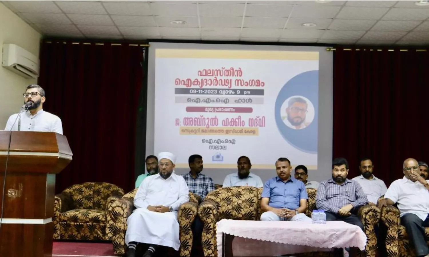 ഐ.എം.ഐ പ്രസിഡന്റ് ജി.സലീം സേട്ട് അധ്യക്ഷത വഹിച്ചു. വിവിധ സംഘടന ഭാരവാഹികളായ റഷീദ് കൽപറ്റ, കെ.എ.റഹീം, അബ്ദുല്ലത്തീഫ് ഫൈസി തിരുവള്ളൂർ, കെ.ഷൗക്കത്തലി, ഹരികുമാർ ഓച്ചിറ, രമേഷ് കുമാർ കെ.കെ, സഈദ്, ഉസ്മാൻ വാടാനപ്പള്ളി എന്നിവർ ഐക്യദാർഡ്യമർപ്പിച്ച് സംസാരിച്ചു. ഫലസ്തീൻ ഐക്യ ദാർഡ്യ ഗാനം വിദ്യാർത്ഥികൾ അവതരിപ്പിച്ചു.