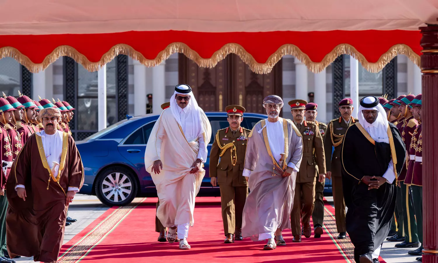 തടവുകാരുടെ കൈമാറ്റം സംബന്ധിച്ച് ഉണ്ടാക്കിയ കരാർ വ്യവസ്ഥകൾ പൂർണമായും നടപ്പിലാക്കുമെന്നും ഇത് സമാധാനത്തിന് വഴിയൊരുക്കുമെന്നും ഇരുനേതാക്കളും പ്രത്യാശ പ്രകടിപ്പിച്ചു. ഗസ്സയുടെ പുനർനിർമാണത്തിന് പ്രാദേശിക, അന്താരാഷ്ട്ര പ്രയത്നങ്ങൾ ആവശ്യമാണെന്നും അവർ ഊന്നിപ്പറഞ്ഞു. സിറിയയുടെ പരമാധികാരത്തെയും എല്ലാവരെയും ഉൾക്കൊള്ളുന്നതുമായ ഒരു രാഷ്ട്രീയ പരിവർത്തനത്തിനായുള്ള ശ്രമങ്ങളെയും പിന്തുണക്കേണ്ടതിന്റെ പ്രാധാന്യത്തെക്കുറിച്ചും ഇരു നേതാക്കളും സംസാരിച്ചു. അമീറിന് അൽ ആലം പാലസ് ഗസ്റ്റ്ഹൗസിൽ സുൽത്താൻ ഹൈതം ബിൻ താരിഖ് ഔദ്യോഗിക അത്താഴവിരുന്ന് നടത്തിയിരുന്നു. രാജ്യങ്ങൾ തമ്മിലുള്ള സാഹോദര്യ ബന്ധത്തിന്റെ ഭാഗമായി ഇരു നേതാക്കളും അനുസ്മരണ സമ്മാനങ്ങളും കൈമാറി. റോയൽ എയർപോർട്ടിൽ നൽകിയ യാത്രയപ്പ് ചടങ്ങിന് സുൽത്താൻ ഹൈതം ബിൻ താരിഖ് നേതൃത്വം നൽകി.