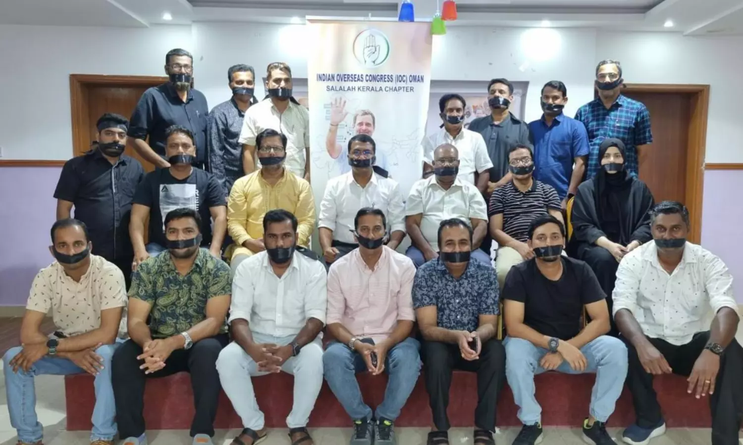 രാഹുൽ ഗാന്ധി വിഷയം; ഐ.ഒ.സി സലാല ചാപ്റ്റർ വായ മൂടികെട്ടി പ്രതിഷേധിച്ചു