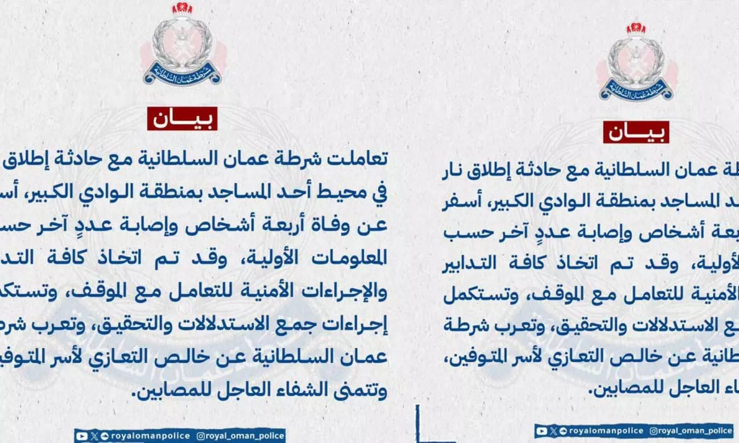 ഒമാനിലെ വാദി കബീറിൽ വെടിവെയ്പ്പ്: നാല് മരണം