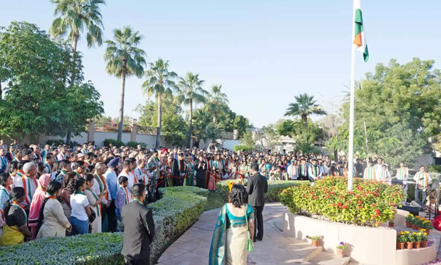 മസ്കത്ത്: 76-ാമത് റിപബ്ലിക് ദിനം ആഘോഷിച്ച് മസ്കത്തിലെ ഇന്ത്യൻ പ്രവാസി സമൂഹം. മസ്കത്ത് ഇന്ത്യൻ എംബസി അങ്കണത്തിൽ നടന്ന റിപ്പബ്ലിക് ദിനാഘോഷത്തിൽ 500 ലേറെ പേരാണ് പങ്കെടുത്തത്. ഇന്ത്യൻ സ്ഥാനപതി അമിത് നാരംഗ് എംബസി അങ്കണത്തിൽ ദേശീയ പതാകയുയർത്തി. ഭാര്യ ദിവ്യനാരംഗിനൊപ്പം ചേർന്നാണ് മഹാത്മാഗാന്ധിയുടെ പ്രതിമയിൽ ഇന്ത്യൻ സ്ഥാനപതി പുർഷ്പാർച്ചന നടത്തിയത്. അഹിംസാ സിദ്ധാന്തത്തെയും ഗാന്ധി ജീവിതത്തിലുടനീളം കാത്തുസൂക്ഷിച്ച മാനവിക മൂല്യങ്ങളെയും അനുസ്മരിച്ചുകൊണ്ടാണ് ആഘോഷ പരിപാടികൾക്ക് തുടക്കമിട്ടത്. ഇന്ത്യയുടെ പുരോഗതി, ജനാധിപത്യ മൂല്യങ്ങൾ, ഭാവി അഭിലാഷങ്ങൾ എന്നിവ ഉയർത്തിക്കാട്ടിയുള്ള രാഷ്ട്രപതിയുടെ റിപ്പബ്ലിക് ദിന സന്ദേശത്തിൽനിന്നുള്ള സുപ്രധാന ഉദ്ധരണികൾ അംബാസഡർ വായിച്ചു