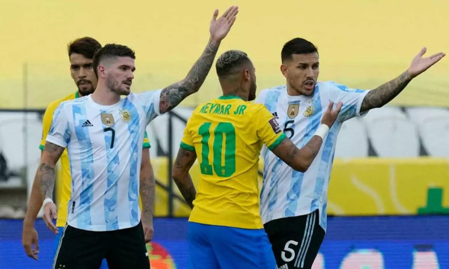 കഴിഞ്ഞ വർഷം സെപ്തംബറിൽ ബ്രസീലിൽ വെച്ച് നടക്കേണ്ട യോഗ്യതാ മത്സരമാണ് കളി തുടങ്ങി അഞ്ച് മിനുട്ടിനകം നിർത്തിവെക്കേണ്ടി വന്നത്. എമിലിയാനോ മാർട്ടിനെസ്, ക്രിസ്ത്യൻ റൊമേറോ, ലോസെൽസോ എന്നിവർ കോവിഡ് മാനദണ്ഡങ്ങൾ ലംഘിച്ചെന്ന് ആരോപിച്ച് ബ്രസീലിയൻ ആരോഗ്യ വകുപ്പാണ് മത്സരം നിർത്തിവെക്കാൻ ആവശ്യപ്പെട്ടത്.