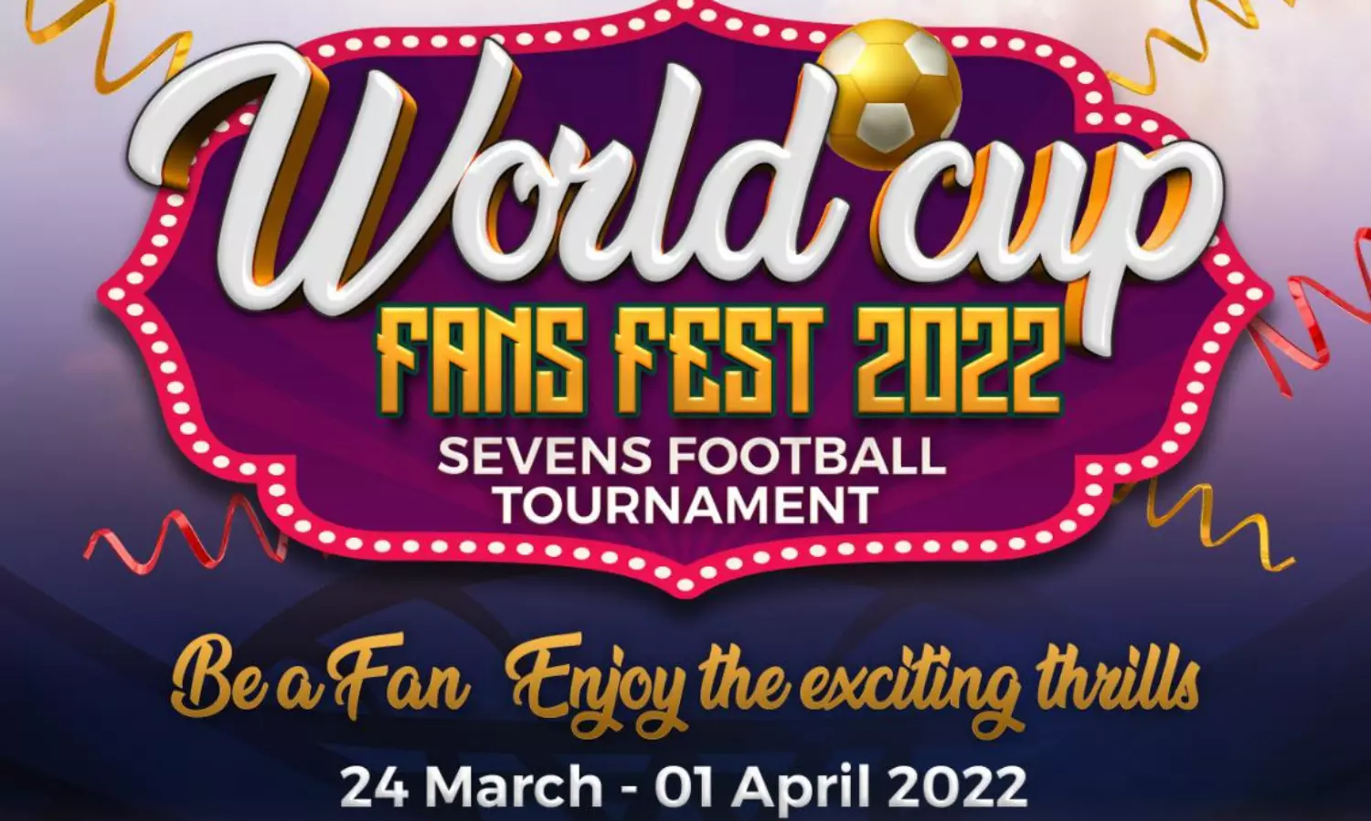 ദോഹ. ഖത്തര് എക്സ്പാറ്റ് സ്പോർട്ടീവ് ഫാൻസ് ഫെസ്റ്റിന്റെ ഭാഗമായി സെവൻസ് ഫൂട്ബാൾ ടൂർണ്ണമന്റ് സംഘടിപ്പിക്കുന്നു. ഖത്തര് വേള്ഡ് കപ്പിലേക്ക് യോഗ്യത നേടിയ ടീമുകളുടെ ഫാന്സായിട്ടായിരിക്കും ടീമുകള് ടൂര്ണ്ണമെന്റില് കളത്തിലിറങ്ങുക. മാർച്ച് 24 മുതൽ ഏപ്രിൽ ഒന്ന് വരെ നടക്കുന്ന ടൂർണ്ണമെന്റിലേക്ക് ഖത്തറിലെ വിവിധ ക്ലബ്ബുകളിൽ നിന്നും പ്രവാസികൂട്ടായ്മകളിൽ നിന്നും രജ്സ്ട്രേഷൻ ക്ഷണിച്ചു. വിജയികൾക്ക് ട്രോഫിയും ആകർഷങ്ങളായ സമ്മാനവും നൽകും. രജിസ്ട്രേഷനും കൂടുതൽ വിവരങ്ങൾക്കുമായി 66776961 എന്ന നമ്പരിൽ ബന്ധപ്പെടുക