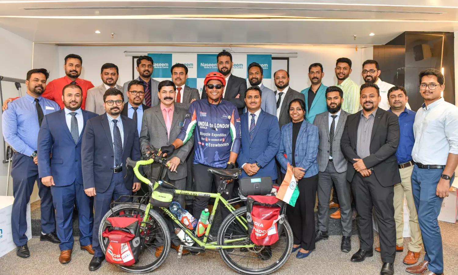 കേരളത്തിൽ നിന്നും ലണ്ടനിലേക്ക് സൈക്കിളിൽ സാഹസിക യാത്ര നടത്തുന്ന ഫായിസ് അഷ്റഫിന് ഖത്തറിൽ നസീം ഹെൽത്ത് കെയർ സ്വീകരണം നൽകി.