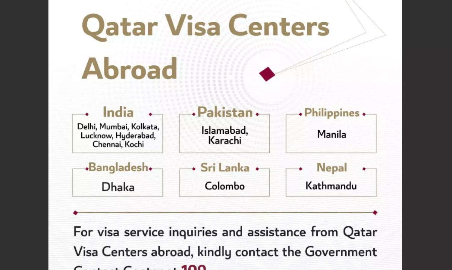ഖത്തര് വിസ സെന്ററുകളിലെ സേവനങ്ങള്ക്കും അന്വേഷണങ്ങള്ക്കുമായി ഹോട് ലൈന് സംവിധാനം