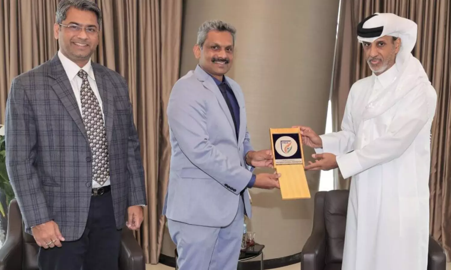 എ.ഐ.എഫ്.എഫ് പ്രസിഡന്റ് കല്യാൺ ചൌബേ, ജനറൽ സെക്രട്ടറി ഷാജി പ്രഭാകരൻ എന്നിവർ ദോഹയിലെത്തി ക്യു.എഫ്.എ അധികൃതരുമായി ചർച്ച നടത്തിയിരുന്നു. ഫിഫ പ്രസിഡന്റ് ജിയാനി ഇൻഫാന്റിനോയുമായും ഇരുവരും കൂടിക്കാഴ്ച നടത്തി.