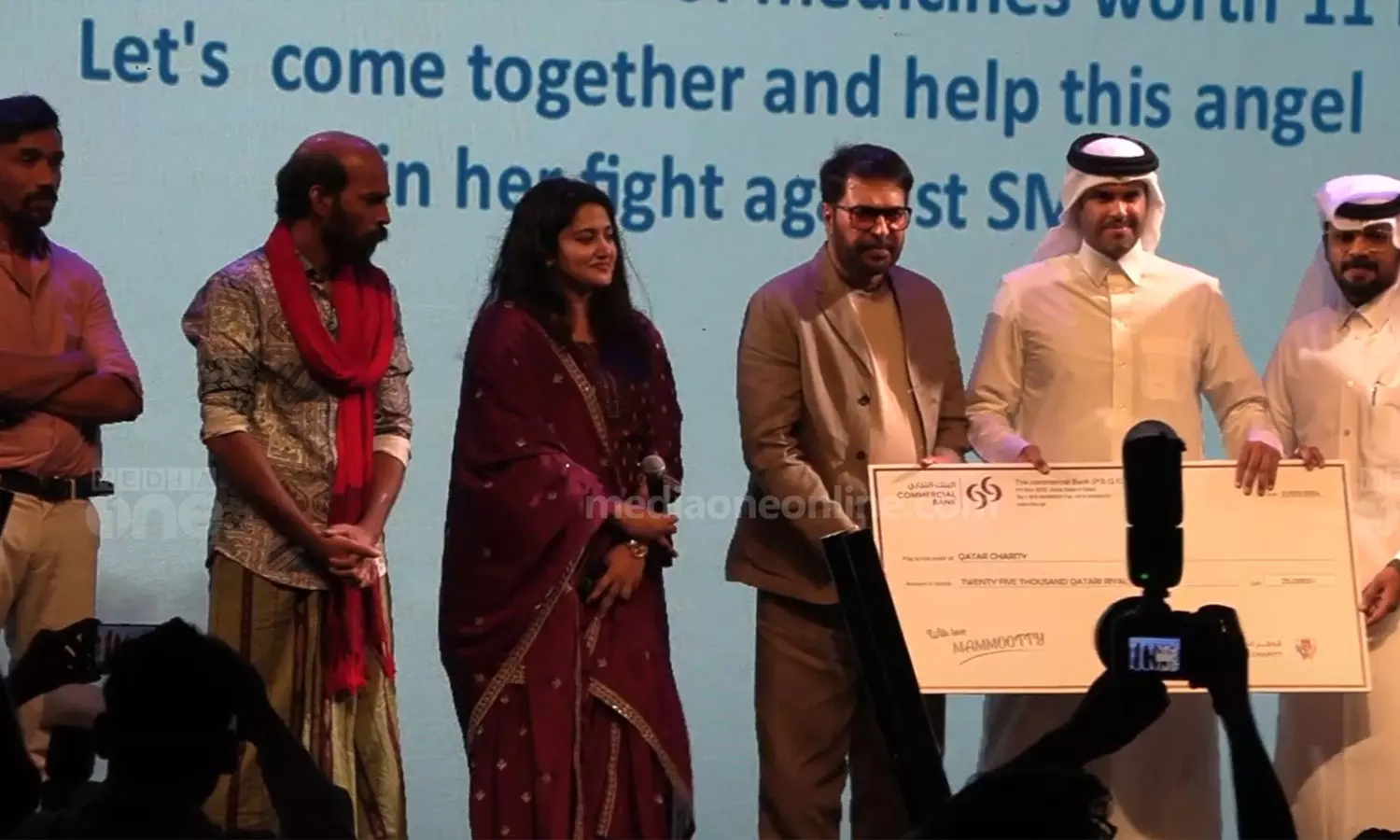 ഖത്തർ ചാരിറ്റി പ്രതിനിധി ഫൈസൽ റാഷിദ് അൽ ഫെഹൈദ മമ്മൂട്ടിയിൽ നിന്നും ഫണ്ട് ഏറ്റുവാങ്ങി