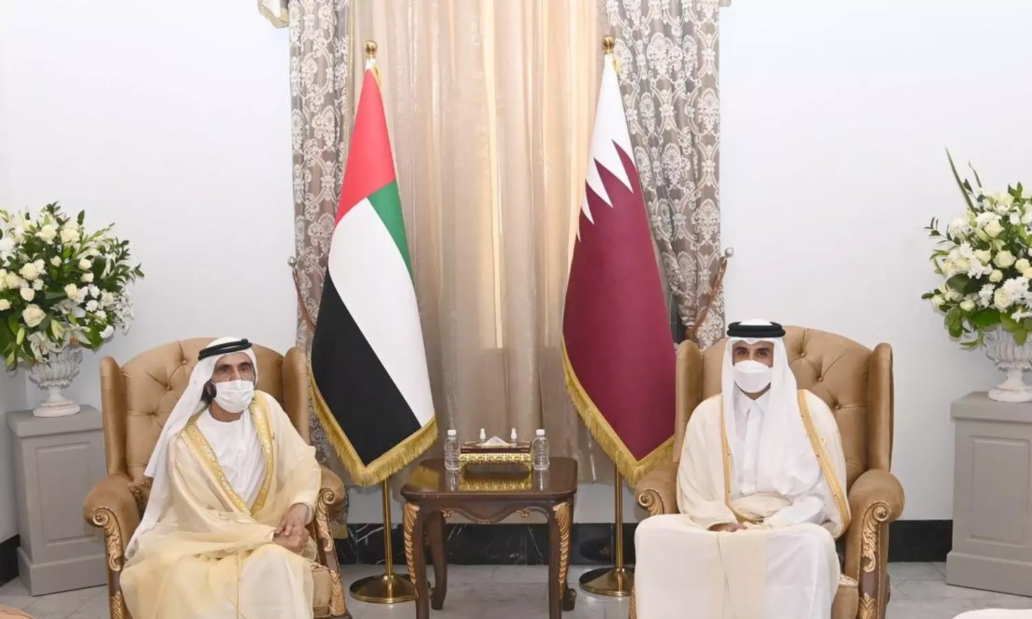 ഖത്തര് അമീര് ശൈഖ് തമീം ബിന് ഹമദ് അല്ത്താനിയും ദുബൈ ഭരണാധികാരിയും യുഎഇ വൈസ് പ്രസിഡന്റുമായ ശൈഖ് മുഹമ്മദ് ബിന് റാശ് അല് മക്തൂമും തമ്മില് കൂടിക്കാഴ്ച് ചനടത്തി. ബാഗ്ദാദില് വെച്ച് നടക്കുന്ന അന്താരാഷ്ട്ര സഹകരണ പങ്കാളിത്ത ഉച്ചകോടിക്കിടെയാണ് ഇരുവരും തമ്മില് ചര്ച്ച നടത്തിയത്. ഉപരോധം അവസാനിച്ച അല് ഉല ഉച്ചകോടിക്ക് ശേഷം ഇതാദ്യമായാണ് ഇരുഭരണാധികാരികളും നേരില് കാണുന്നത്. ഇരുരാജ്യങ്ങളില് നിന്നുള്ള മന്ത്രിമാരടങ്ങുന്ന പ്രതിനിധിസംഘവും ചര്ച്ചയില് പങ്കെടുത്തു. നയതന്ത്ര ഉഭയകക്ഷി ബന്ധം മെച്ചപ്പെടുത്തുന്നതും പൊതുതാല്പ്പര്യമേഖലകളില് സഹകരണം ശക്തമാക്കുന്നതിനുള്ള ചര്ച്ചകളും കൂടിക്കാഴ്ച്ചയിലുണ്ടായതായി അന്താരാഷ്ട്ര മാധ്യമങ്ങള് റിപ്പോര്ട്ട് ചെയ്തു.
