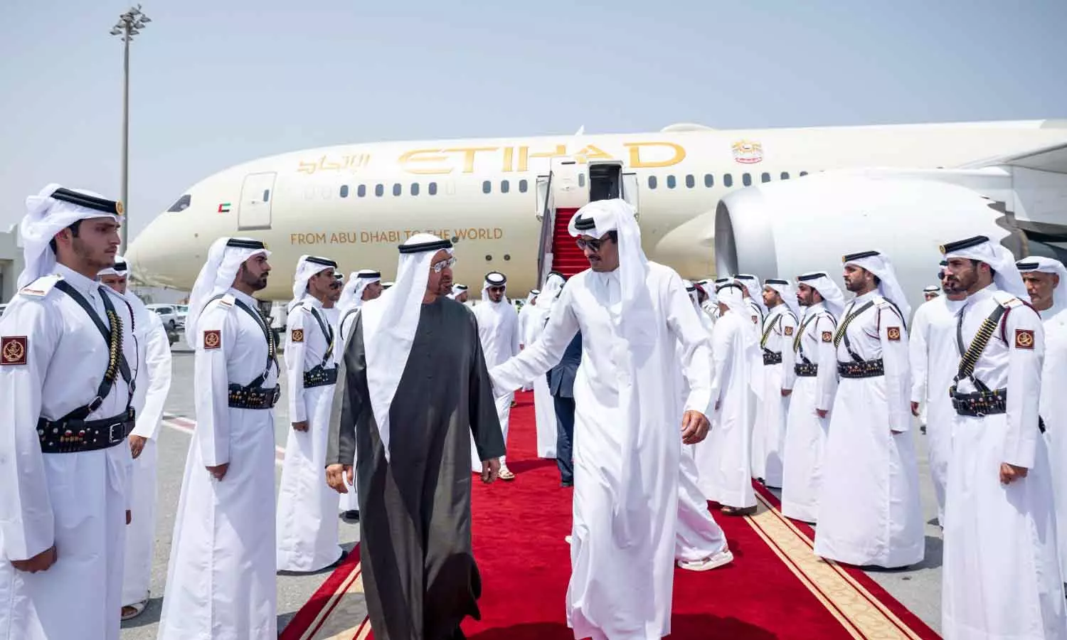 യുഎഇ പ്രസിഡന്റ് ദോഹയിൽ; ഖത്തർ അമീർ വരവേറ്റു