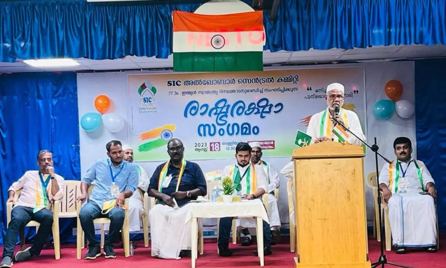 ഇന്ത്യയുടെ 77ാമത് സ്വതന്ത്ര ദിനാഘോഷങ്ങളുടെ ഭാഗമായി സൗദി നാഷണൽ കമ്മറ്റി ഒരുക്കിയ രാഷ്ട്ര രക്ഷാ സംഗമങ്ങൾക്ക് ഐക്യദാർഢ്യം പ്രഖ്യാപിച്ച് സമസ്ത ഇസ്ലാമിക് സെന്റർ അൽഖോബാർ സെൻട്രൽ കമ്മറ്റി ടാലൻ്റ് വിങിൻ്റെ നേതൃത്വത്തിൽ "ഒന്നിച്ചിരിക്കാം പുതിയൊരു ഇന്ത്യക്കായി" എന്ന ബാനറിൽ രാഷ്ട്ര രക്ഷാ സംഗമം സംഘടിപ്പിച്ചു.