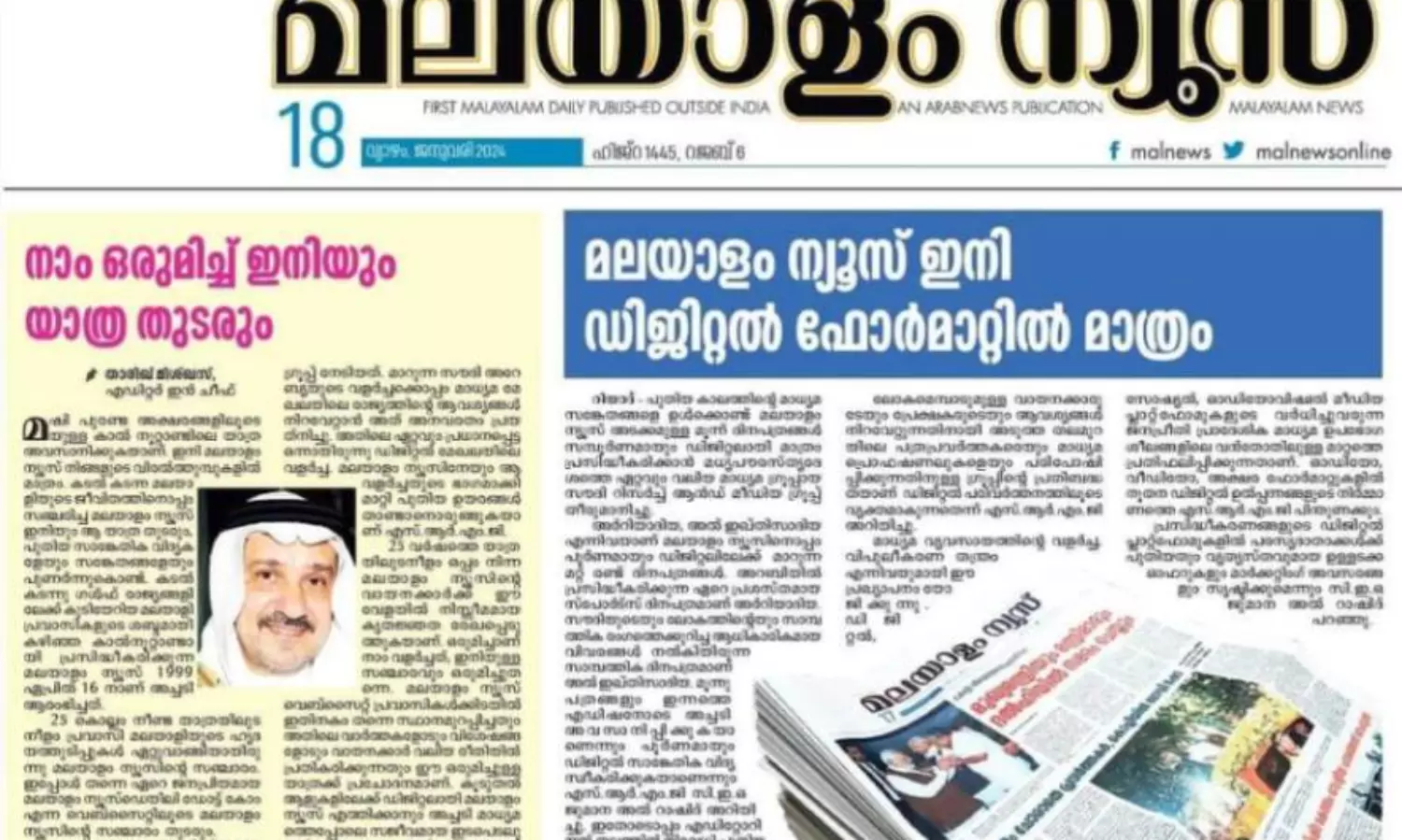 സൗദിയിലെ 'മലയാളം ന്യൂസ്' പത്രം പ്രിന്റിങ് നിർത്തി