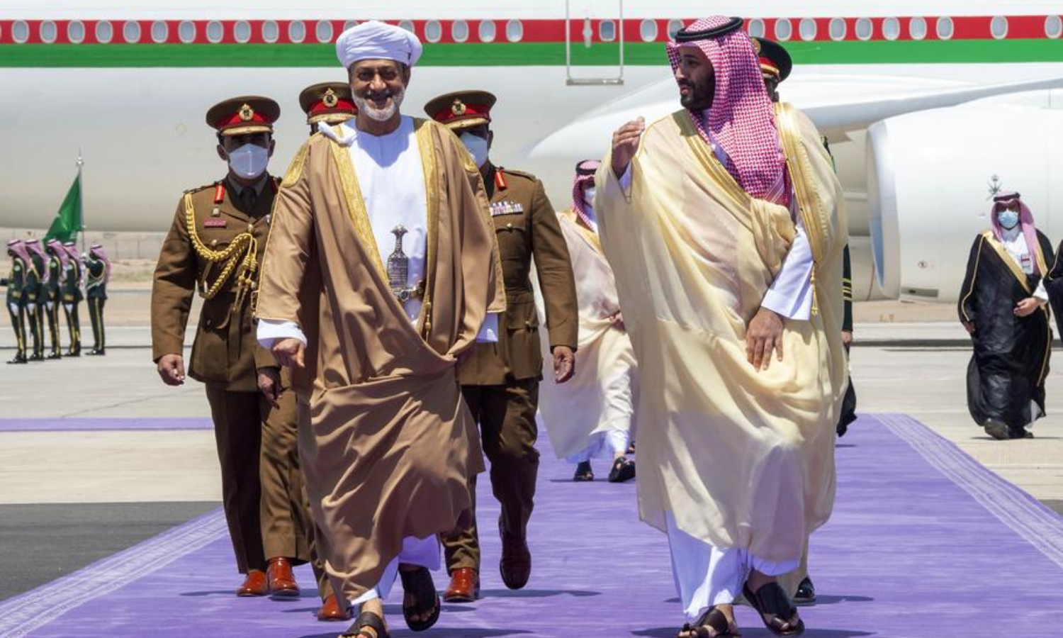 ഇന്ന് ഉച്ചയ്ക്കുശേഷമാണ് ഒമാൻ ഭരണാധികാരി സൗദിയിലെ നിയോം വിമാനത്താവളത്തിൽ എത്തിയത്. സൗദി കിരീടാവകാശി മുഹമ്മദ് ബിൻ സൽമാൻ നേരിട്ടെത്തി സ്വീകരിച്ചു. ഇതിനു പിന്നാലെ ആകാശത്ത് സൗദി, ഒമാൻ പതാകയുടെ നിറത്തിലുള്ള വിമാനങ്ങളെത്തി. വിവിധ തലങ്ങളിലുള്ള ചർച്ചകൾക്കായി എത്തിയ ഒമാൻ ഭരണാധികാരി ഹൈതം ബിൻ ത്വാരിഖിനെ നിയോമിലെ കൊട്ടാരത്തിൽ സൽമാൻ രാജാവാണ് സ്വീകരിച്ചത്.
