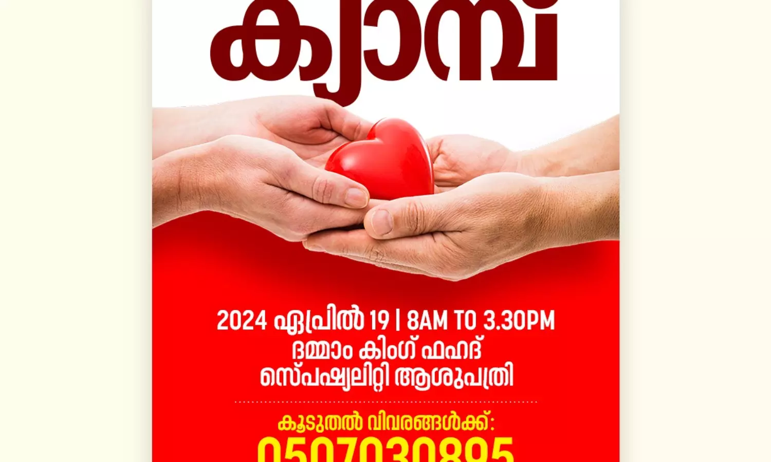 ദമ്മാം: പ്രവാസി വെൽഫെയർ ദമ്മാം റീജിയണൽ കമ്മിറ്റി കിങ് ഫഹദ് സ്പെഷ്യാലിറ്റി ഹോസ്പിറ്റലുമായി സഹകരിച്ച് ഏപ്രിൽ 19ന് രക്തദാന ക്യാമ്പ് സംഘടിപ്പിക്കുന്നു. രാവിലെ 8 മണി മുതൽ 3.30 വരെ കിങ് ഫഹദ് സ്പെഷ്യാലിറ്റി ഹോസ്പിറ്റലിൽ വെച്ച് ക്യാമ്പ് നടക്കും. റമദാൻ ഈദ് കാലയളവിൽ നേരിട്ട രക്തത്തിന്റെ കുറവ് പരിഹരിക്കുന്നതിന്റെ ഭാഗമായാണ് ക്യാമ്പ് സംഘടിപ്പിക്കുന്നത്. രക്തത്തിന്റെ ലഭ്യത കുറഞ്ഞതിനാൽ മാരകമായ രോഗങ്ങളാൽ പ്രയാസപ്പെടുന്ന രോഗികൾക്ക് അടിയന്തരമായി രക്തം ആവശ്യമുള്ളതായി ആശുപത്രി അധികൃതർ പ്രവാസി ജനസേവന വിഭാഗത്തെ അറിയിച്ചതിന്റെ അടിസ്ഥാനത്തിലാണ് ക്യാമ്പ് സംഘടിപ്പിക്കുന്നത്. വിവിധ ക്ലബ്ലുകളും കൂട്ടായ്മകളുമായി സഹകരിച്ചാണ് ക്യാമ്പ്. ക്യാമ്പിൽ രക്തദാനം ചെയ്യാൻ ആഗ്രഹിക്കുന്നവർ 0507030895, 0533468584 എന്നീ നമ്പറുകളിൽ ബന്ധപ്പെടാവുന്നതാണെന്ന് സംഘാടകർ അറിയിച്ചു.