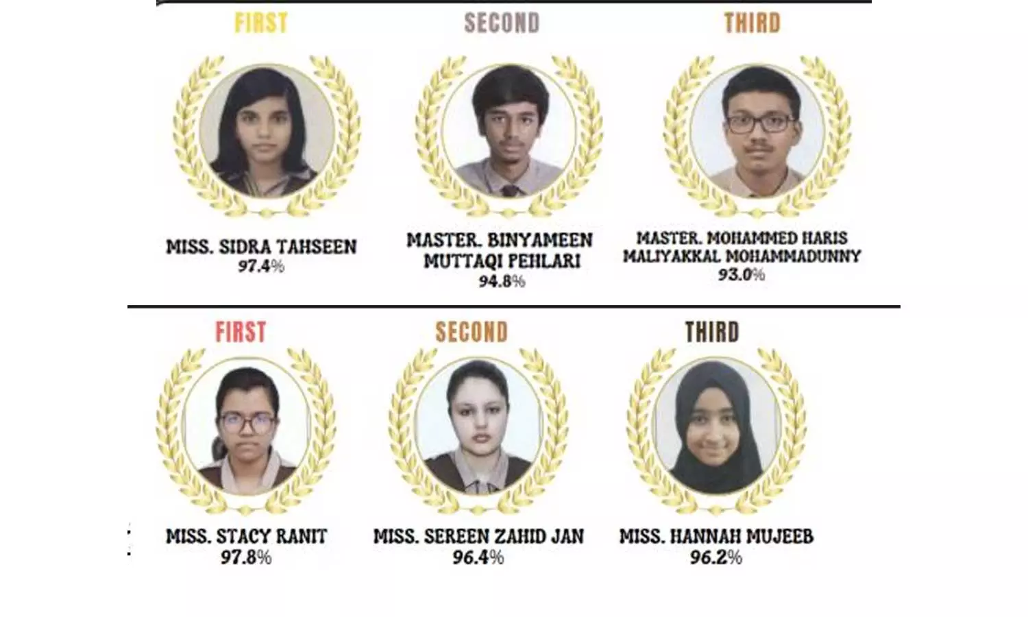 സയൻസ് വിഭാഗത്തിൽ സിദ്ര തഹ്സീൻ (97.40%),ബിന്യാമിൻ മുത്തഖീ പെഹ്ലാരി ( 94.80), സൽമാൻ ഫാരിസ് (92%) എന്നിവർ ഒന്ന്, രണ്ട്, മൂന്ന് സ്ഥാനങ്ങൾ ഉറപ്പിച്ചപ്പോൾ കൊമേഴ്സ് വിഭാഗത്തിൽ മുഹമ്മദ് ഹാരിസ് മാളിയേക്കൽ (93%) ജെലിൻ റോസ് (88.60%), നേഹ സുധേഷ് (86%) എന്നിവർ ഒന്ന്, രണ്ട്, മൂന്ന് സ്ഥാനങ്ങൾ നേടി. മൻതഷ ഫൈൻ ആർട്സ് വിഷയത്തിൽ നൂറിൽ നൂറ് മാർക്കും നേടി സ്കൂളിന്റെ അഭിമാനമായി മാറി.