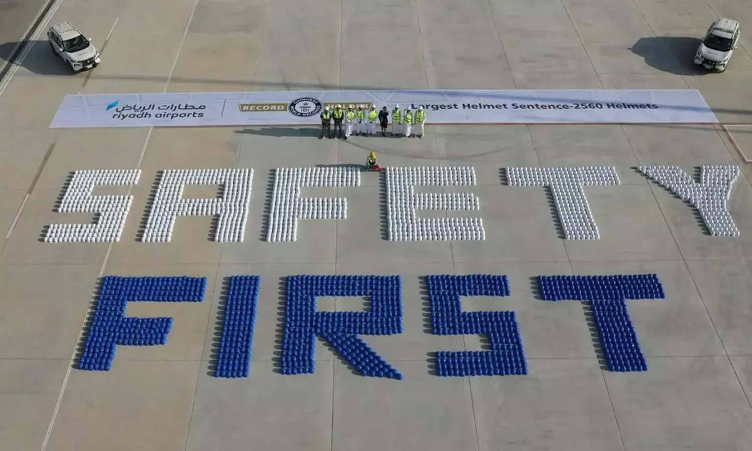 2,560 ഹെൽമെറ്റുമായി സേഫ്റ്റി ഫസ്റ്റ് എന്നെഴുതി നേട്ടം ആഘോഷിച്ചു, ഗിന്നസ് വേൾഡ് റെക്കോഡ്