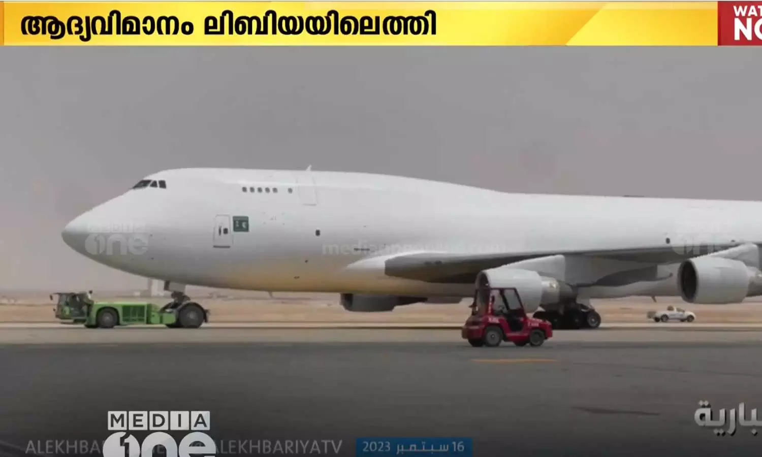 ലിബിയയിൽ സൗദിയുടെ സഹായം; 90 ടൺ സാധനങ്ങളുമായി ആദ്യ വിമാനം ലിബിയയിലെത്തി