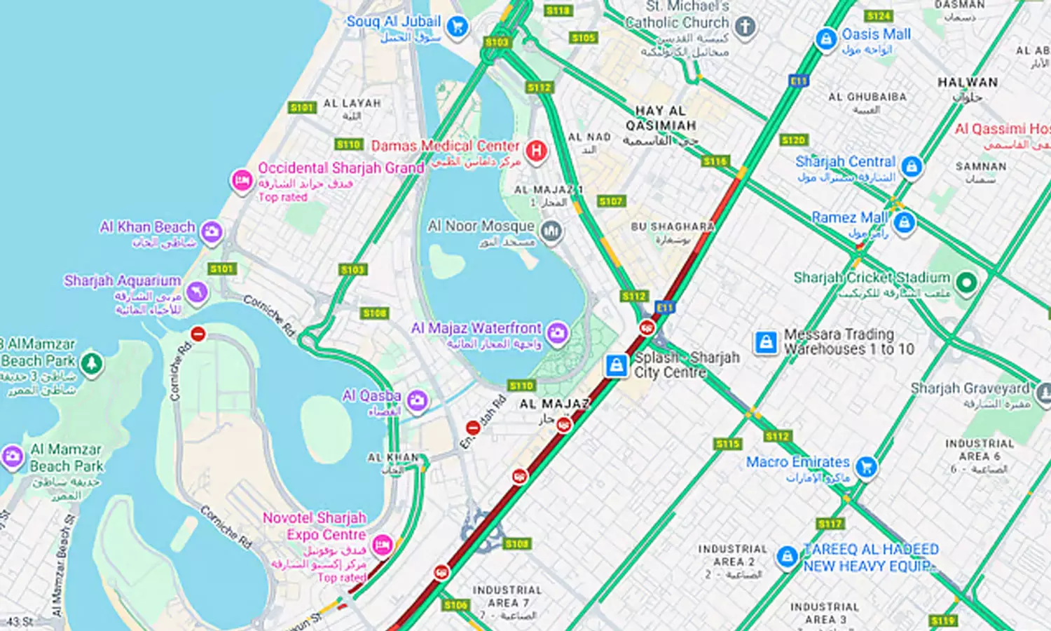 അപകടങ്ങൾ, കനത്ത ഗതാഗത തടസ്സങ്ങൾ.. ദുബൈ- ഷാർജ യാത്രമാർഗങ്ങളായ E11, E311 റോഡുകൾ സ്തംഭിച്ചു