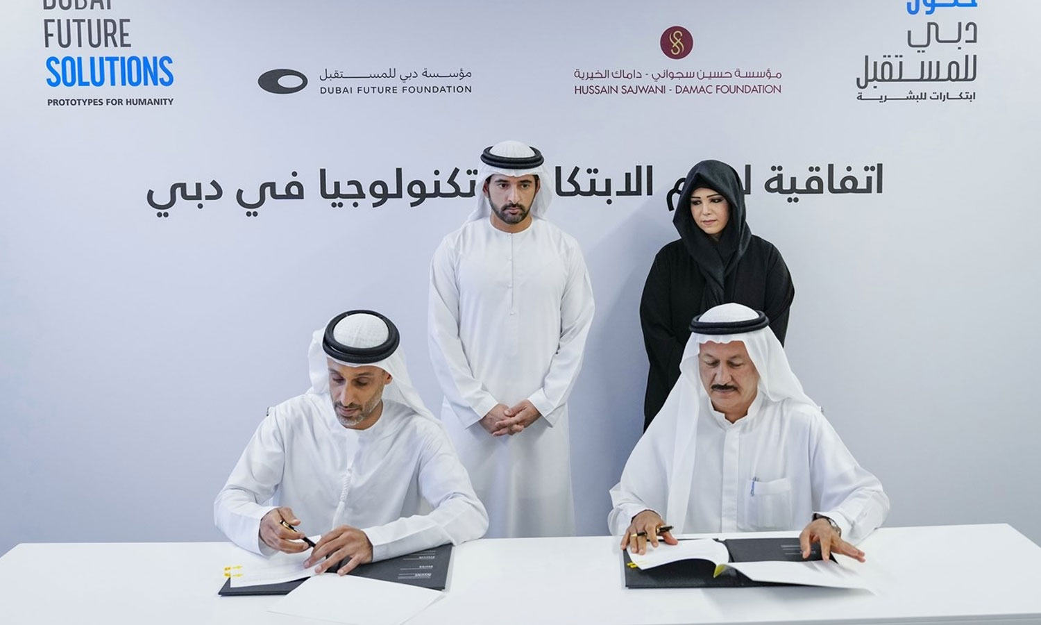 ദുബൈ ഫ്യൂച്ചർ ഫൗണ്ടേഷൻ ആസ്ഥാനത്ത് ഇരുവരുടെയും സാന്നിധ്യത്തിൽ നടന്ന ചടങ്ങിൽ ദുബൈ ഫ്യൂച്ചർ ഫൗണ്ടേഷനും ഹുസൈൻ സജ്വാനിയുടെ ദമാക് ഫൗണ്ടേഷനും തമ്മിലുള്ള സഹകരണ കരാറിൽ ഒപ്പുവെച്ചു. യു.എ.ഇയിൽ നൂതന ആയങ്ങളേയും സാങ്കേതിക വിദ്യകളെയും പിന്തുണക്കുന്നതിനായി 10 കോടി ദിർഹം നിക്ഷേപിച്ച സ്ഥാപനമാണ് ദമാക് ഫൗണ്ടേഷൻ. ലോകത്തെമ്പാടുമുള്ള ഫ്യൂച്ചർ സൊല്യൂഷൻസിൻറെ നവീന ആശയക്കാരേയും ഡിസൈനർമാരെയും പിന്തുണയ്ക്കുന്നതിനും മികച്ച പ്രതിഭകളെയും സർഗ്ഗാത്മക ചിന്തകരെയും പരിപോഷിപ്പിക്കുന്നതിനുമുള്ള ഒരു സമഗ്ര പ്ലാറ്റ്ഫോമായി ഈ സംരംഭം പ്രവർത്തിച്ചു വരുന്നതായി ശൈഖ് ഹംദാൻ പറഞ്ഞു. കഴിഞ്ഞ ഒമ്പത് വർഷത്തിനിടെ ആഗോള തലത്തിൽ 700ലധികം സർവകലാശാലകളിൽ നിന്നുള്ള വിദ്യാർഥികൾ സമർപ്പിച്ച 10,000ത്തിധികം നൂതന പദ്ധതികൾ പ്രദർശിപ്പിക്കാൻ സംരംഭത്തിന് സാധിച്ചതായി ശൈഖ ബിൻത് മുഹമ്മദ് ബിൻ റാശിദ് ആൽ മക്തൂം പറഞ്ഞു.