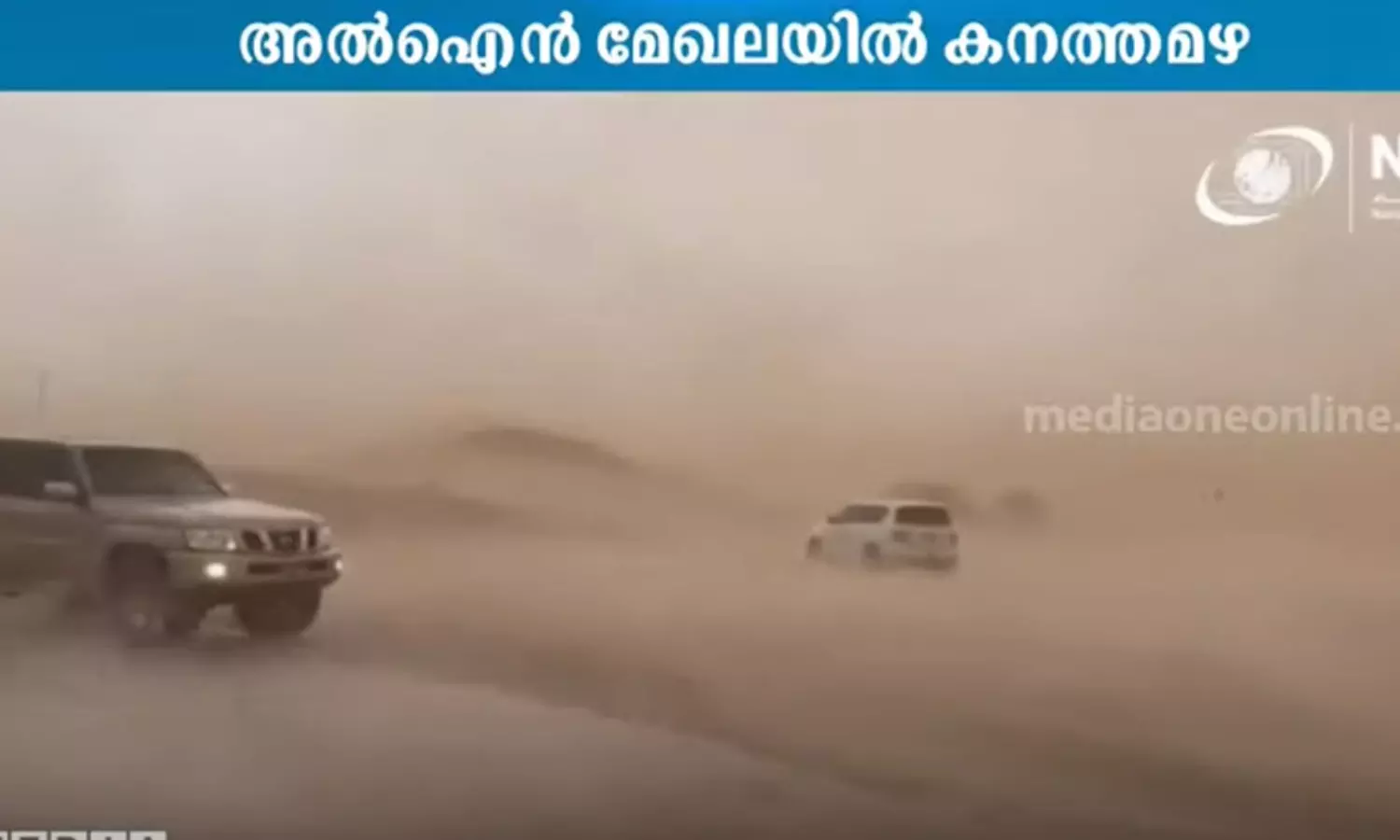 മഴക്ക് സാധ്യതയുള്ളതിനാൽ അബൂദബി എമിറേറ്റിന്റെ കിഴക്കൻ നഗരമായ അൽഐനിൽ ഓറഞ്ച് യെല്ലോ അലർട്ടുകൾ പ്രഖ്യാപിച്ചിരുന്നു. അൽഐന്റെ അൽഹിയാർ, മലാഖിത്, അൽഫുഅ, നാഹിൽ, അൽഫഖ പ്രദേശങ്ങളിൽ ശക്തമായ മഴ ലഭിച്ചു. വിനോദ സഞ്ചാരമേഖലയായ ജബൽ ഹഫീത്ത് മലയോരങ്ങളിലും മഴ ശക്തമായിരുന്നു. ദൂരക്കാഴ്ചയെ ബാധിക്കുന്ന വിധം മഴ ശക്തമായതിനാൽ അൽഐൻ-ദുബൈ റോഡിലെ വേഗതപരിധി കുറച്ചതായി അബൂദബി പൊലീസ് അറിയിച്ചു. ഈ മേഖലയിൽ ഇന്ന് രാത്രിയിലും അസ്ഥിരകാലാവസ്ഥ തുടരുമെന്നാണ് മുന്നറിയിപ്പ്. മഴയും കാറ്റും തുടരും എന്നതിനാൽ യെല്ലോ അലർട്ട് പ്രഖ്യാപിച്ചിട്ടുണ്ട്.