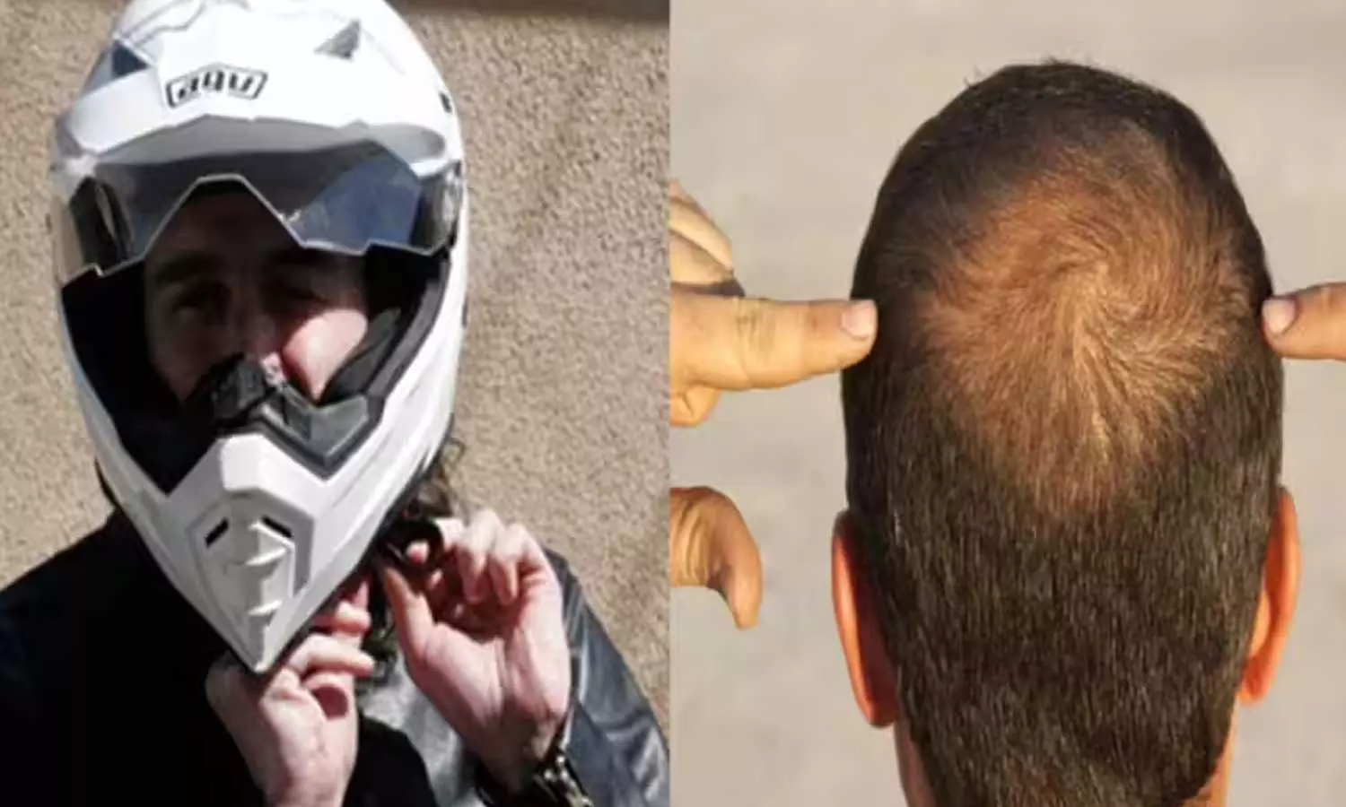 ഹെൽമെറ്റ് ധരിക്കുന്നതുമൂലം തലയിൽ ഉണ്ടാകുന്ന വിയർപ്പാണ് പ്രധാന വില്ലൻ. ഇത് മുടിയുടെ വേരുകളെ ദുർബലപ്പെടുത്തുകയും മുടി കൊഴിയാൻ കാരണമാവുകയും ചെയ്യുന്നു. കൂടാതെ, ഹെൽമെറ്റ് ധരിക്കുമ്പോഴും നീക്കുമ്പോഴും മുടി വലിച്ചുനീട്ടുന്നതും, മുടി കൊഴിച്ചിലിന് കാരണമാകും.